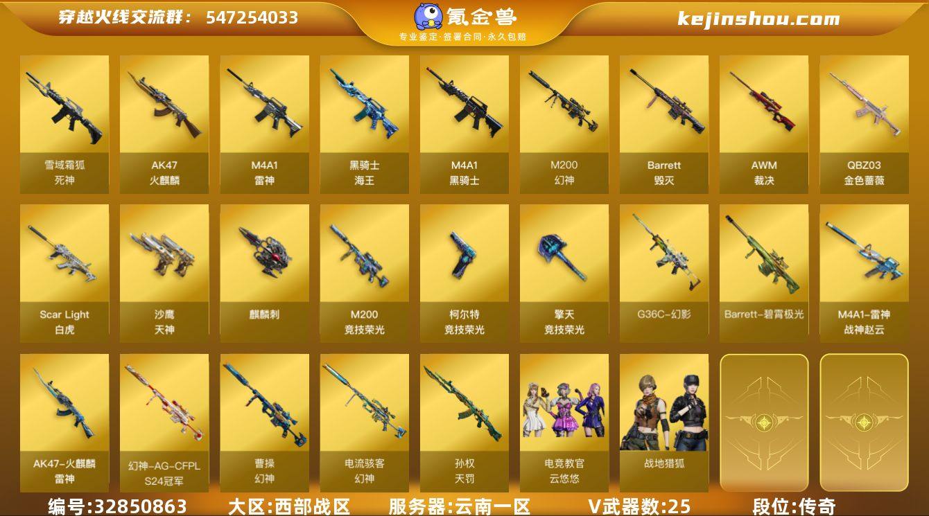 【CFX1001】25V/83级/将帅/4英雄/G36C-幻影/QBZ03-金色蔷薇/Scar Light-白虎/M200-幻神/金色蔷薇-古蛇迷踪/修罗-古蛇迷踪/M200-竞技荣光/M4A1-黑骑士/Barrett-碧霄极光音效卡/死神-雪域霜狐-怀旧音效卡/幻神-电流骇客/幻神-曹操/幻神-AG-CFPL S24冠军/裁决-巅峰荣耀 皮肤/M4A1-战神赵云/雷神-化蛇 皮肤/火麒麟-雷神/天罚-孙权/屠龙-破浪逐光 皮肤/电竞教官-云悠悠/零·纪元/战地猎狐/雪域霜狐/蛇隐宗/乔伊教练/修道士/北极狐-X/电竞少女/芳心审判者/风暴女/娟娟/0号玩家/灵狐者-X/龙儿/麻雀/曼陀罗-X/蛇姬/兔囡囡/影武者-X/AWM-灵狐-15周年嘉年华/迷你深渊冰龙/迷你牛牛/超级对讲机/AK47-火麒麟/M4A1-雷神/死神-雪域霜狐/黑骑士-海王/Barrett-毁灭/AWM-裁决/沙鹰-天神/柯尔特-竞技荣光/麒麟刺/尼泊尔-雷霆/擎天-竞技荣光/高爆手雷-竞技荣光/高爆手雷-古蛇迷踪/闪光弹-雷霆/闪光弹-雷暴/闪光弹-竞技荣光/烟雾弹-竞技荣光/烟雾弹-古蛇迷踪/M4A1-赤狱骑士/AWM-昌龙/Barrett-碧霄极光/源·雷神/魂·M4A1-雷神-化蛇/魂·雷神-诺拉/魂·雷神-神秘按键/魂·黑骑士-破浪10年/魂·黑武士-锋芒破茧/源·武圣/源·机械迷城/源·HK417-朱雀/源-金色蔷薇/魂·QBZ03-金色蔷薇-古蛇迷踪/QBZ03-文殊坊/魂·...