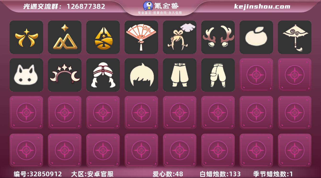 【lyg304】区服:国服安卓官服,换绑时间:4.29,登入方式:邮箱【5季卡】绊爱鹿角红伞正太头樱花头猫猫头红金斗篷白金斗篷,蜡烛数量:133,爱心:48,当前身高13.664,最高身高1.846,最矮身高13.846,已经毕业地图:雨林,霞谷,已经毕业季节:归巢季,拾光季,欧若拉季,稀有礼包:星月头冠,圣诞鹿角,绊爱套装,雪花发卡,玉兔,大桔大利,祥云瑞气纸伞,献瑞折扇礼包,热门物品:蝴蝶结,公主头,正太头,樱花头,猫猫头,搓澡巾,武士裤,白棉裤,花环头饰,宴会围巾,虚荣发型,红耳机,黄鼠狼面具,红狐狸面具,红金斗篷,白金斗篷,白鸟斗篷,吉他,尤克里里,高音钢琴,雨伞