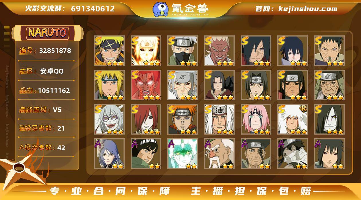 21S忍/42A忍/战力1051W/V5/区服1745 【S忍者】 宇智波佐助「漩涡鸣人」,艾「忍界大战」,宇智波斑「秽土转生·解」,宇智波佐助「永恒万花筒」,春野樱「忍界大战」,迈特凯「死门」,宇智波带土「忍界大战」,千手柱间「秽土转生」,自来也「舞之豪杰」,旗木卡卡西「须佐能乎」,宇智波鼬「秽土转生」,药师兜「仙人模式」,千手扉间「秽土转生」,猿飞日斩「秽土转生」,长门「秽土转生」,宇智波鼬「须佐能乎」,佩恩「天道」,波风水门,大蛇丸,自来也,波风水门「九喇嘛连结」, 【A忍者】 小南「神驹佑将」,大野木「侠隐江湖」,巳月「仙人模式」,迈特凯「青春爆炸」,土台「忍界大战」,长十郎「六代目水影」,不缘,日向宁次「忍界大战」,漩涡博人「桃式显现」,日向雏田「最终章」,李洛克「忍界大战」,不动,蝎「绯流琥」,宇智波泉奈,桃地再不斩「秽土转生」,长门「青年」,艾「青年」,达鲁伊「五代目雷影」,不风,波风水门「青年」,奇拉比「忍界大战」,黑土「四代目土影」,宇智波佐助「须佐能乎」,迪达拉「秽土转生」,漩涡鸣人「九尾查克拉」,千代「近松十人卫」,药师兜「半蛇斗篷」,宇智波佐助「疾风传咒印」,我爱罗「忍界大战」,秋道丁次「忍界大战」,大蛇丸「晓」,春野樱「百豪」,宇智波佐...