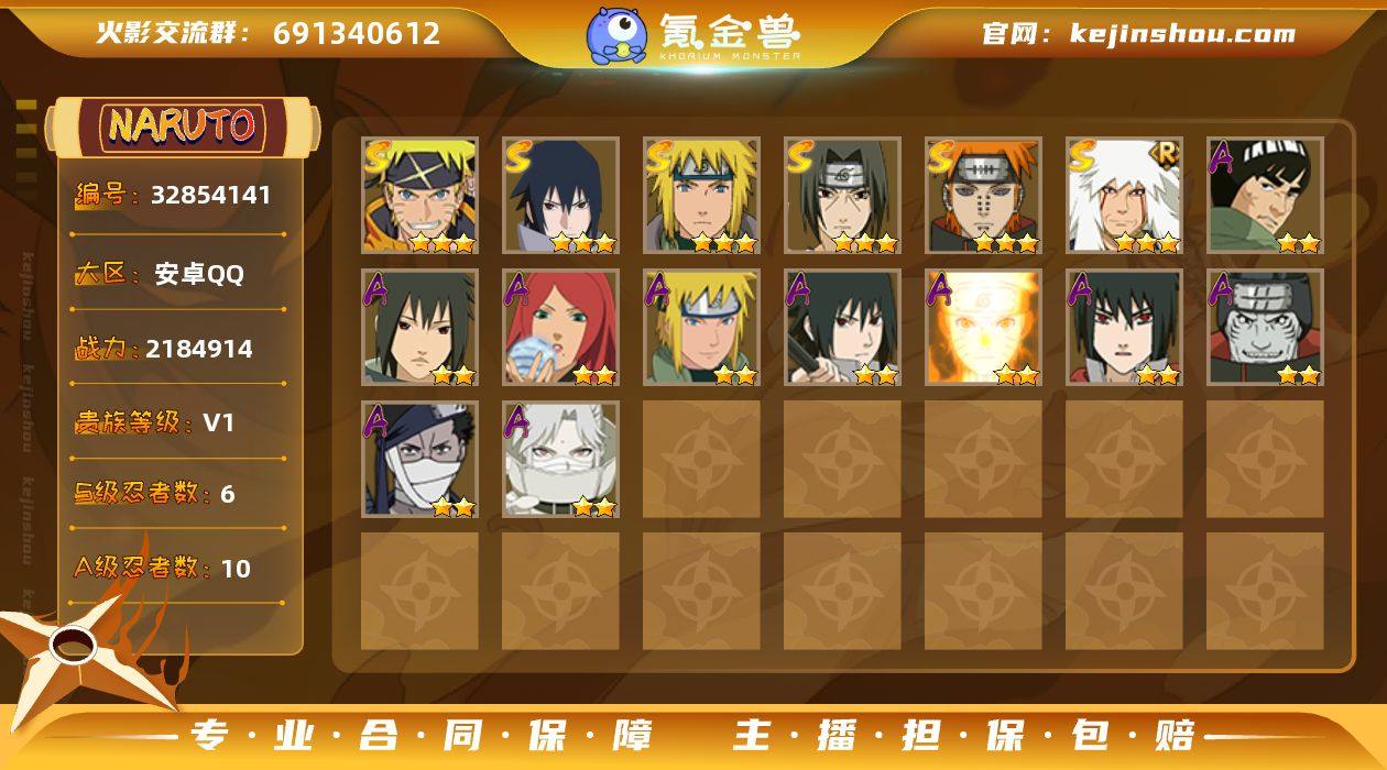6S忍/10A忍/战力218W/V1/区服3487 【S忍者】 宇智波佐助「漩涡鸣人」,宇智波佐助「永恒万花筒」,自来也「舞之豪杰」,宇智波鼬「须佐能乎」,佩恩「天道」,波风水门, 【A忍者】 迈特凯「青春爆炸」,宇智波泉奈,不风,波风水门「青年」,宇智波佐助「须佐能乎」,漩涡鸣人「九尾查克拉」,宇智波佐助「万花筒写轮眼」,干柿鬼鲛,卑留呼「火之意志继承者」,桃地再不斩, PX_2452178