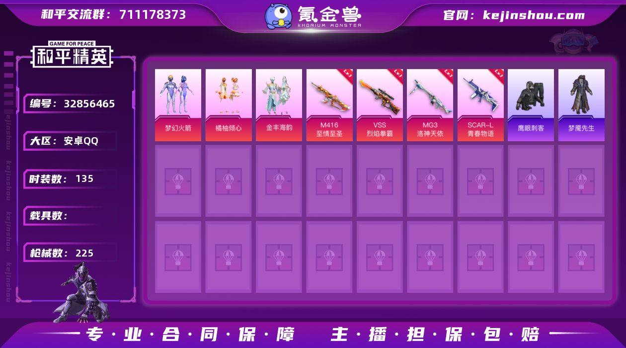 安卓 手Q-4粉装-9特效枪-0载具-2粉色飞行器-66859热力值-8王牌印记-135套装-225枪皮 【热门品类】:粉装-梦幻火箭,角色-军刀雅典娜,套装-龟仙人,套装-暗影哥特 【粉色套装】:粉装-幻影战神,粉装-梦幻火箭,粉装-橘柚倾心,粉装-金丰海韵 【粉色枪皮等级】:SCAR-L-青春物语(六级),M416-至情至圣(九级),ACE32-萌骑漫游(一级),AKS-74U-森灵之息(五级),Kar98K-巳巳如意(五级),VSS-烈焰拳霸(五级),Mk14-福马献瑞(五级),DP-28-豹影疾电(五级),MG3-洛神天依(五级) 【粉色枪皮】:SCAR-L-青春物语,M416-至情至圣,ACE32-萌骑漫游,AKS-74U-森灵之息,Kar98K-巳巳如意,VSS-烈焰拳霸,Mk14-福马献瑞,DP-28-豹影疾电,MG3-洛神天依 【粉色飞行器】:炫彩糖果飞行器,梦幻火箭飞行器 【粉色降落伞】:幻影战神降落伞,梦幻火箭降落伞,香水柠檬降落伞,洛神天依降落伞,青春物语降落伞,暗夜鎏金降落伞,未来歌姬降落伞,动力核心降落伞,鬼刀降落伞,异瞳寒姬降落伞,炫彩糖果降落伞 【稀有套装】:套装-龟仙人,套装-超能元气,套装-荧光像素,套装-雪国风尚,套装-炫彩糖果,套装-马上有钱,套装-燕燕于飞,套装-鱼渊荷华,套装-蜜露汐语,角色-紫俏灵猫,套装-书海巡...
