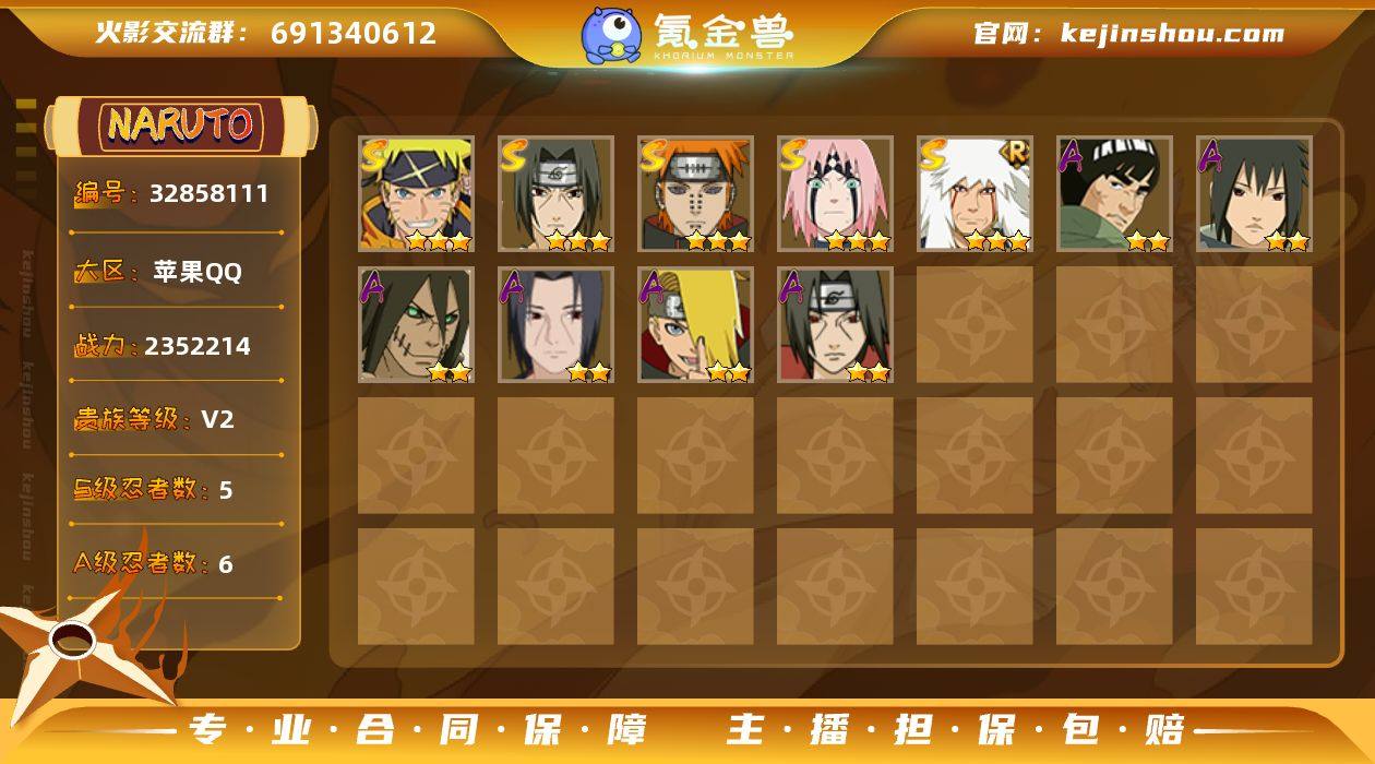 IOS/5S忍/6A忍/战力235W/V2/区服850 【S忍者】 宇智波佐助「漩涡鸣人」,春野樱「忍界大战」,自来也「舞之豪杰」,宇智波鼬「须佐能乎」,佩恩「天道」, 【A忍者】 迈特凯「青春爆炸」,宇智波鼬「夏日限定」,宇智波泉奈,角都「秽土转生」,迪达拉,宇智波鼬, PX_2383284