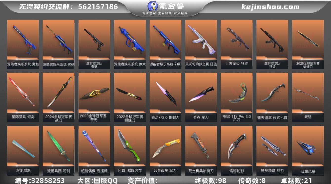 【NF347】【22-25冠军离火刃双城套!充值2w块钱!可小刀,已经签合同,永久包赔】 【套装】:2025全球冠军赛套装,2024全球冠军赛套装,2023全球冠军赛套装,2022全球冠军赛套装,源能者娱乐系统套装,电音光谱套装,虚空遗器套装,西部未来套装,创·纪元套装,RGX 11z Pro//3.0套装,混沌序曲套装,离火刃套装,《英雄联盟:双城之战》套装,千灵华绽套装,奇点套装,光明哨兵套装,奇点//2.0套装,黯夜怪谈套装,VCTxEDG 队伍套装,回火礼包:奇点套装,盖亚的复仇套装,掠影套装,无畏启程套装,离火刃套装 【英雄】:幻棱,炼狱,维斯,暮蝶,钛狐,壹决,铁臂,捷风,雷兹,幽影,不死鸟,贤者,猎枭,蝰蛇,零,芮娜,奇乐,尚勃勒,霓虹,斯凯,夜露,星礈,K/O,海神,盖可,黑梦,钢锁 【近战武器】:近战武器-2025全球冠军赛 蝴蝶刀,近战武器-2024全球冠军赛 战刀,近战武器-2023全球冠军赛 苦无,近战武器-2022全球冠军赛 蝴蝶刀,近战武器-光荣异象 歧途,近战武器-谐波音谱,近战武器-奇点//2.0 蝴蝶刀,近战武器-紫金爪刀,近战武器-RGX 11z Pro//3.0 爪刀,近战武器-离火刃,近战武器-黑波之刃,近战武器-奇点 军刀,近战武器-落英飞旋,近战武器-镭切,近战...