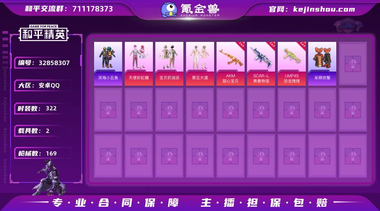 【公主裙子号】新小丑 两姐妹 AKM-甜心宝贝 安卓Q-1红装2载具15粉装16特效枪8热门93套装169枪皮 59528热力值 2印记 历史传奇王牌17星 【1红装】 辉羽雀灵-初翊 (2级) 【2载具】 黑曜夜骑 辉羽雀灵自行车 【15粉装】 狂魅哈莉 女娲灵识 天鹅座冰河 宝贝奶油派 天使彩虹糖 狂魇小丑 雪月幻音 荧海星豚 异瞳寒姬 星穹咏叹调 冷漠罗丽 羊梦糖心 羲和光序 幻彩电音 第五大道 【16特效枪】 M416-灵猫魔法师 (2级) M416-女娲灵识 (3级) AKM-甜心宝贝 (4级) AKS-74U-星穹咏叹调 (3级) Kar98K-巳巳如意 (5级) MG-36-幻彩电音 (2级) MG3-辉羽雀灵 (3级) Vector-绯穹魔姬 (3级) DP-28-豹影疾电 (5级) AUG-暖羊咩咩 (5级) Mk14-甜梦熊击 (5级) GROZA-镜光银凌 (5级) UMP45-恐龙拽拽 (1级) SCAR-L-青春物语 (4级) 破片手榴弹-瓶中星球 (5级) 烟雾弹-甜梦果泡 (4级) 【8热门】 小丑鱼 呆萌铁蟹 深海小丑鱼 暗影哥特 豚鼠丹丹 狂沙舞者 弄潮海豚 M24-奇异狩猎者 【2头盔】 甜心宝贝头盔 深海小丑鱼头盔 【2背包】 甜心宝贝背包 深海小丑鱼背包 营地ID:979601183 PX_2363961