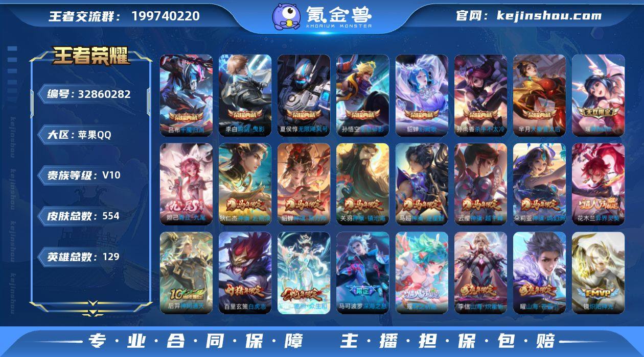 【aswz1913】苹果Q-V10-最强王者段位-129英雄-554皮肤-8典藏-2无双-64传说-182史诗 【英雄全皮】:刘禅全皮,扁鹊全皮,达摩全皮,孙权全皮,娜可露露全皮,刘备全皮,太乙真人全皮,鬼谷子全皮,苏烈全皮,狂铁全皮,盾山全皮,猪八戒全皮,敖隐全皮,鲁班大师全皮,蒙恬全皮,阿古朵全皮,夏洛特全皮,金蝉全皮,赵怀真全皮,莱西奥全皮,戈娅全皮,空空儿全皮,影全皮 【荣耀典藏】:武则天英雄,孙悟空全息碎影,夏侯惇无限飓风号,孙尚香杀手不太冷,芈月大秦宣太后,李白鸣剑曳影,貂蝉幻阙歌,吕布千魇归渊 【无双皮肤】:瑶真我赫兹,妲己青丘九尾 【传说皮肤】:云缨神骥越千峰,关羽神骥镇沧海,朵莉亚神骥鸣幻洲,狄仁杰神骥赴朔漠,貂蝉神骥聚万邦,马超神骥逐星野,花木兰异界灵契,后羿神树通天,妲己愿照众生和,艾琳觅芳踪,云缨鹤归松栖,上官婉儿妄想奇谈,马可波罗妄想实况,东皇太一灼幽烈阳,诸葛亮鹤羽星尊,澜电玩雷克斯,亚瑟追逃游戏,安琪拉追逃游戏,张飞百相守梦,公孙离记忆之芯,夏洛特浮生妄,干将莫邪画中仙,花木兰燃星之曲,虞姬无限倾心,项羽无限倾心,伽罗炽翼辉光,孙悟空齐天大圣,小乔山海琳琅生,曜山海苍雷引,李信山海炽霜斩,吕...