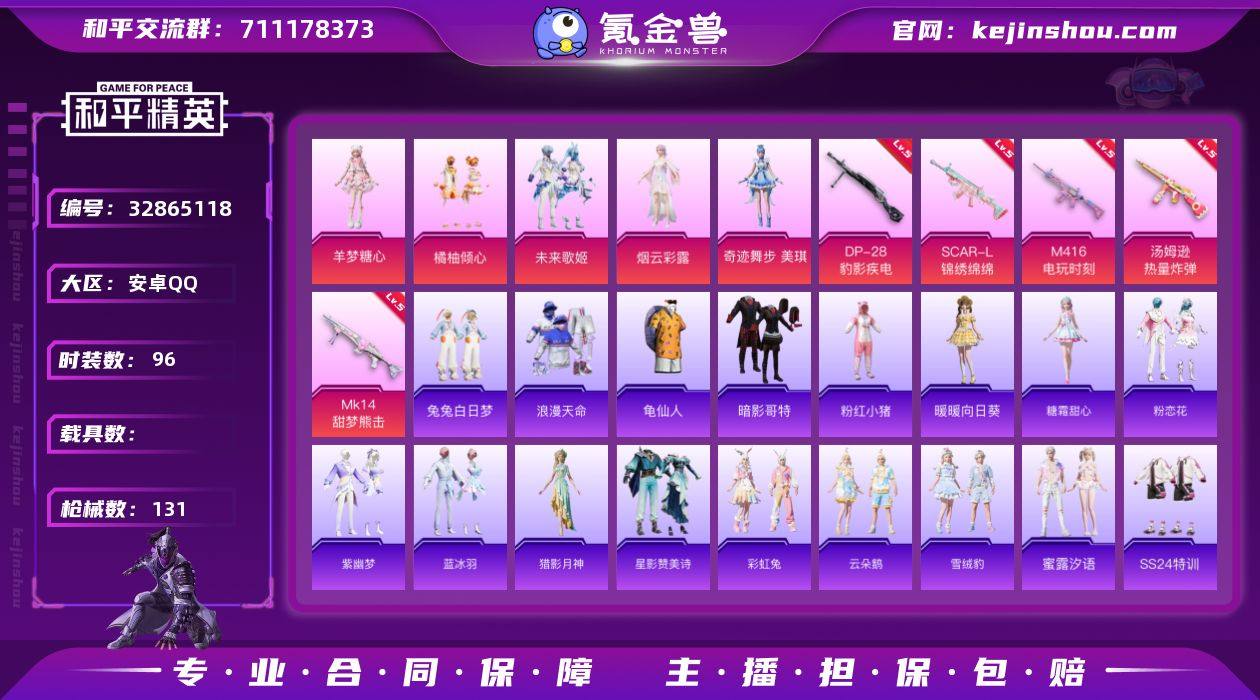 5粉装6特效枪2粉色飞行器39855热力值 【热门品类】:套装-浪漫天命,套装-龟仙人,套装-暗影哥特,套装-粉红小猪 【粉色套装】:粉装-橘柚倾心,粉装-未来歌姬,角色-烟云彩露,角色-奇迹舞步 美琪,角色-羊梦糖心 【粉色枪皮等级】:SCAR-L-锦绣绵绵(五级),M416-电玩时刻(五级),ACE32-萌骑漫游(四级),汤姆逊-热量炸弹(五级),Mk14-甜梦熊击(五级),DP-28-豹影疾电(五级) 【粉色枪皮】:SCAR-L-锦绣绵绵,M416-电玩时刻,ACE32-萌骑漫游,汤姆逊-热量炸弹,Mk14-甜梦熊击,DP-28-豹影疾电 【粉色飞行器】:粉樱探戈飞行器,云梦轻舟飞行器 【粉色降落伞】:梦幻火箭降落伞,洛神天依降落伞,妙趣可丽降落伞,第五大道降落伞,梦幻舞会降落伞,未来歌姬降落伞,粉樱探戈降落伞,樱桃泡泡降落伞,智耀战神降落伞,圣斗士星矢降落伞,幻海仙踪降落伞 【稀有套装】:套装-龟仙人,套装-暖暖向日葵,套装-暖暖麦兜,角色-糖霜甜心,套装-粉恋花,套装-紫幽梦,套装-蓝冰羽,角色-猎影月神,套装-星影赞美诗,套装-彩虹兔,套装-云朵鹅,套装-雪绒豹,套装-蜜露汐语,套装-雨过天青,套装-红釉青花 【稀有枪皮】:AKM-彩虹符号,AKM-龙的传人,M16A4-幻世战舞者,SCAR-L-红色方程...