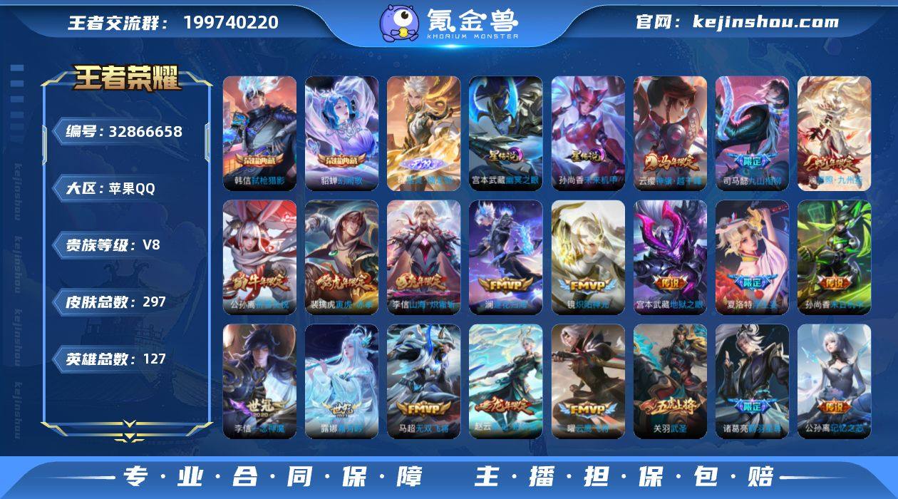 127英雄-297皮肤--V8-2典藏1无双35传说 对抗路59段 打野47段 万战金标项羽,梦奇,曹操 万战公孙离 2星传说 幽冥之眼 未来机甲【全皮英雄】 夏洛特全皮 司马懿全皮 【典藏】 幻阙歌 弑枪猎影 【无双】 器灵螭龙剑 【传说】 乘龙铭钟鼎 逐花归海 九山相柳 神骥越千峰 愿照九州拓 鸣野蒿 鹤羽星尊 启明星使 祈雪灵祝 寅虎赤拳 影龙天霄 山海炽霜斩 武圣 齐天大圣 浮生妄 无限倾心男 炽翼辉光 霜月吟 妄想奇谈 绛天战甲 记忆之芯 无双飞将 诗剑行 炽阳神光 云鹰飞将 久胜战神 一念神魔 云霓雀翎 黄金射手座 黄金白羊座 胖达荣荣 时之恋人男 地狱之眼 末日机甲女 末日机甲策 【热门】祈雪灵祝 御风骁将 山海玄木吟 岱宗 飞衡 武圣 烈魂 天狼征服者 后羿如梦令 白晶晶 冰冠公主 原初追逐者 黎明之约 死神来了 梁祝 云间偶戏 玫瑰异探 电玩小子 黄忠百相守梦 东方月初 涂山红红 战舞者 燃音魔法 百解令 真我赫兹百里 刘备百相守梦 匿光破解者 天秀音浪 电玩爆裂旋风 雪上飞焰 原初探秘者 水晶猎龙者 猫狗日记男 猫狗日记女 金属风暴 地狱岩魂 特工魅影 曙光守护者 特工战影 白蛇 女武神 黄金分割率 胡桃夹子 舞动绿茵 逐浪之夏 修罗 晚萤 千年之狐 紫霞仙子 功夫厨神 心灵骇客 圣诞...