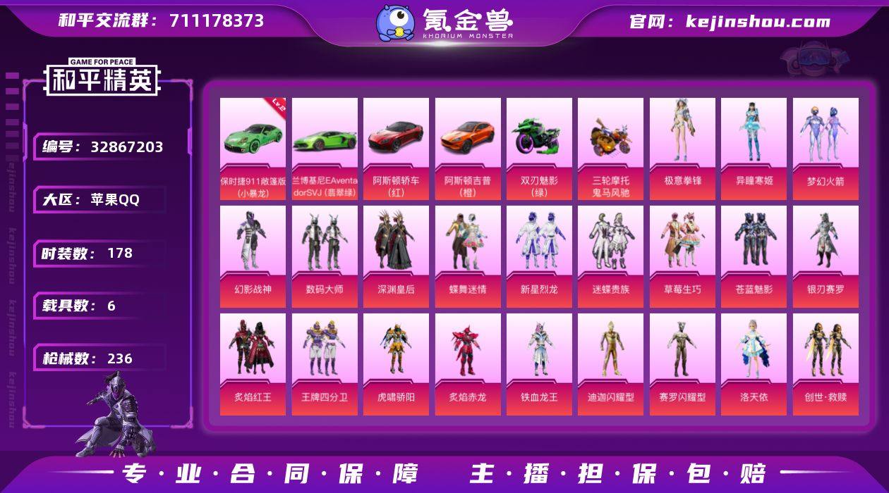 苹果【载具号 保时捷911 敞篷版(小暴龙)(二级)/M416-五爪金龙(一级/M416-灵猫魔法师(六级)/GROZA-精灵之光(三级)/粉装-梦幻火箭/角色-洛天依/百万伏特背包】 手Q-22粉装-16特效枪-6载具-7粉色飞行器-100661热力值-11王牌印记-178套装-236枪皮 【红色载具】:保时捷911 敞篷版(小暴龙)(二级) 【热门品类】:粉装-梦幻火箭 【粉色套装】:粉装-幻影战神,粉装-数码大师,粉装-深渊皇后,粉装-蝶舞迷情,粉装-梦幻火箭,粉装-新星烈龙,粉装-迷蝶贵族,粉装-草莓生巧,粉装-苍蓝魅影,粉装-银刃赛罗,粉装-炙焰红王,粉装-王牌四分卫,粉装-虎啸骄阳,粉装-炙焰赤龙,粉装-铁血龙王,角色-闪耀迪迦,角色-赛罗闪耀型,角色-洛天依,套装-创世·救赎,角色-狂魅哈莉,角色-异瞳寒姬,粉装-极意拳锋 【粉色枪皮等级】:M16A4-葫芦兄弟(四级),SCAR-L-机甲封神(五级),M416-五爪金龙(一级),M416-灵猫魔法师(六级),GROZA-精灵之光(三级),M762-激战未来(五级),蜜獾-异瞳寒姬(四级),ARX-无垠阁(五级),汤姆逊-怪笑疯兔(五级),AKS-74U-信仰神谕(五级),Kar98K-巳巳如意(五级),Mk14-福马献瑞(四级),MG3-洛神天依(五级),PKM-萌骑夺宝(三级),M338-回旋牧梦使(三级),燃烧瓶-...