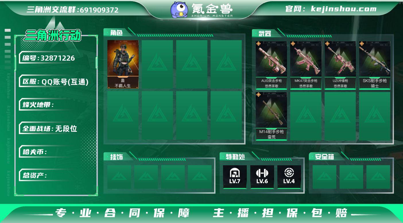 【总资产101.41M 哈弗币2589661 干员外观1个 烽火60级 钻石】总资产:101.4M/哈弗币:2589K/1外观:蛊-不羁人生198072277x,编号:LYFHM31