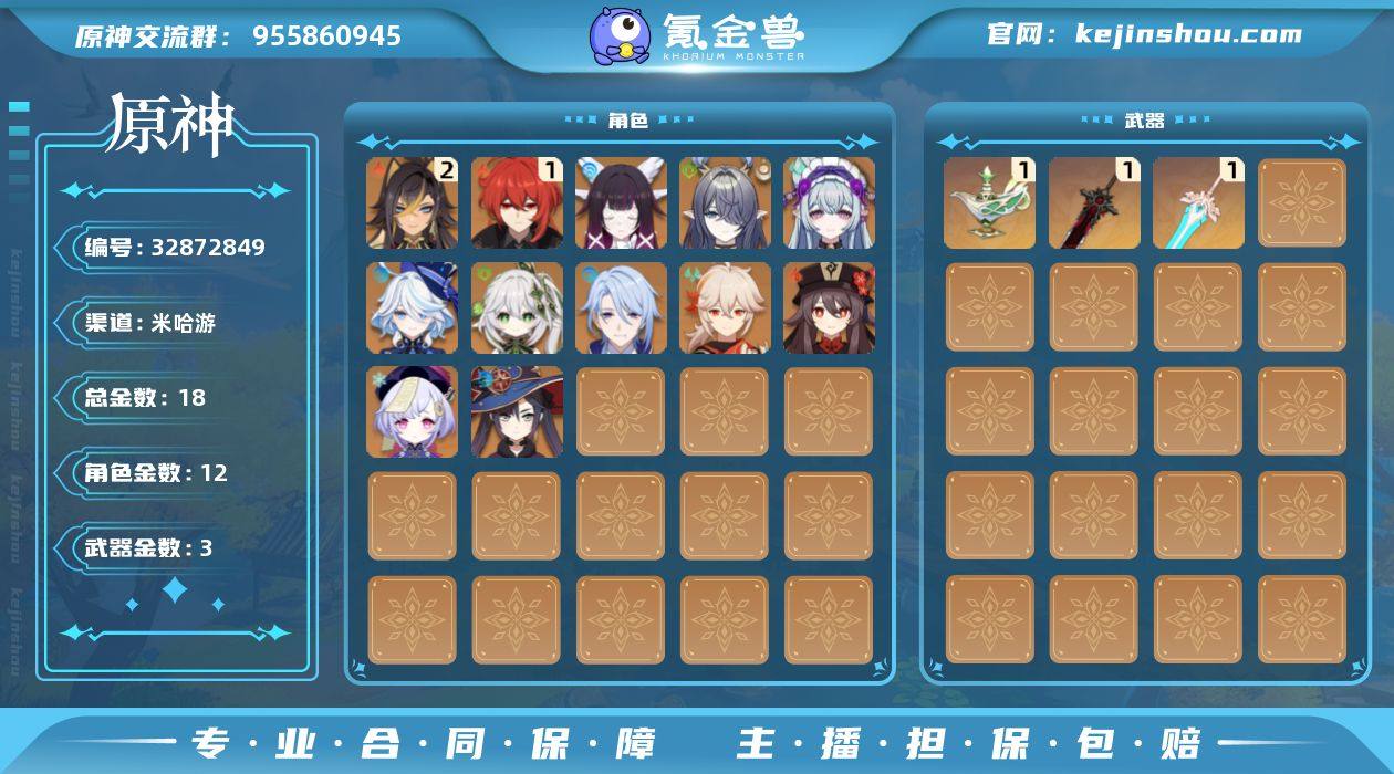 【YSN2492】56级/18黄/女主/12个五星角色/3个五星武器/哥伦比娅/菈乌玛/芙宁娜/枫原万叶/胡桃/神里绫人/纳西妲/莫娜/一命迪卢克/二命迪希雅/梦见月瑞希/七七/狼的末路/千夜浮梦/天空之傲