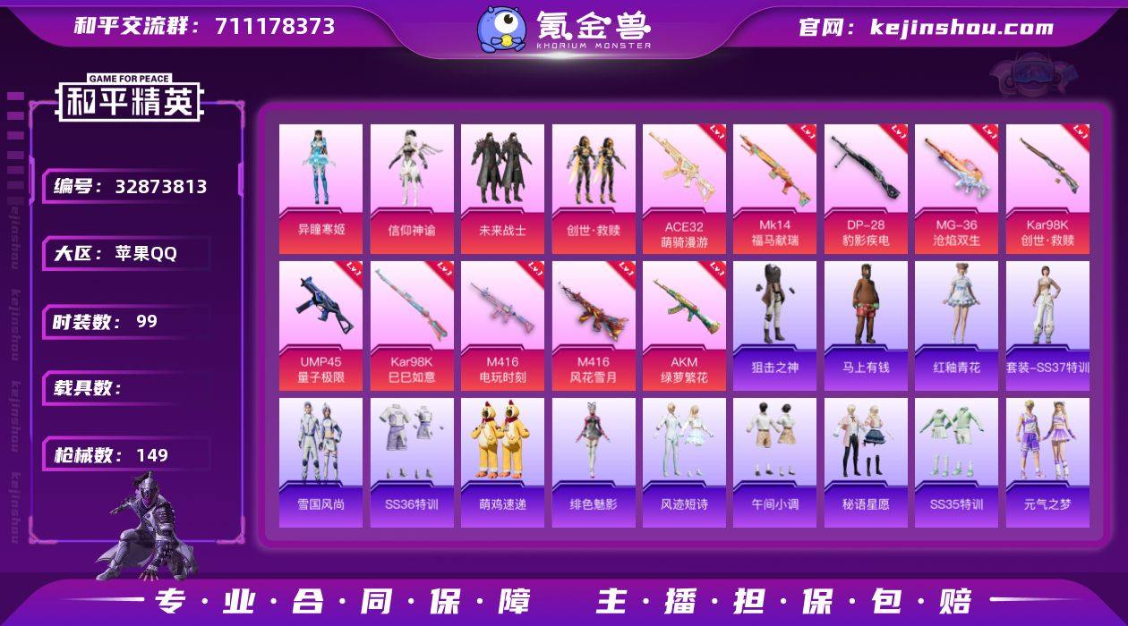 【小番茄满级M4风花雪月10特效枪4粉装 秒换绑不用等】 苹果Q区-43593热力值-99套装-149枪皮 【2稀有】 红熊茄茄(权威小潘茄) Mark.06蓝螳螂【4粉装】 未来战士 创世·救赎 角色-异瞳寒姬 角色-信仰神谕【10特效枪】 M416-风花雪月(7级) Mk14-福马献瑞(5级) ACE32-萌骑漫游(3级) AKM-绿萝繁花(5级) Kar98K-创世·救赎(5级) Kar98K-巳巳如意(5级) M416-电玩时刻(5级) DP-28-豹影疾电(5级) MG-36-沧焰双生(5级) UMP45-量子极限(5级)【162热门】 浪漫天命 雪山精英(老6服) 狂沙舞者 白色伏地魔 SS27特训 SS26特训 SS25特训 TT战队服 SCAR-L-玉兔迎春 Mk47-乌木金纹 UMP45-蓝色火焰 M249-彩虹符号 MG3-幻世战舞者 鹰眼刺客 破蛋小黄鸡 长空猛禽 弄潮海豚 青涩时光 魅力单车 黄色运动 海岛探路者 纯真浪花 AA12-G-雨过天青 沙漠之鹰-雨过天青 红熊茄茄 海琴烟 GROZA-紫矿核心 M16A4-雨过天青 雨过天青 MG-36-薄荷星砂 GROZA-福马献瑞 恋语绒绒 SS34特训 漫游都市 朱霞炽焰 星影赞美诗 DBS-创世·救赎 福马献瑞 大橘大利 M200-罪夜之冕 凌霄紫焰 蓝冰羽 萝兰蝴蝶 ACE32-冰晶雪宝 俏兔智灵 鱼渊荷华 擎苍青焰 大砍刀-鬼刀 SS28特训 PKM-啾咪啾咪 海盐绵绵冰 M16A4-冰河战士 燕燕于飞 SS...