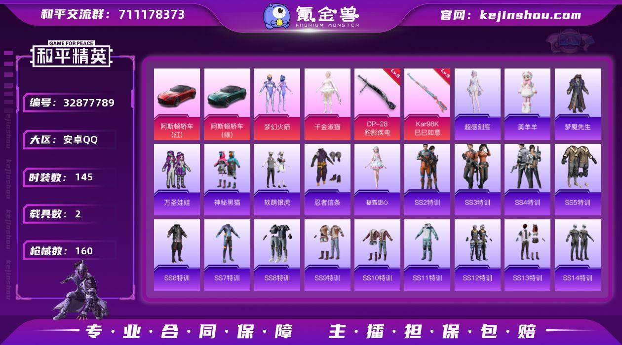 绝世印记1 【特价出售/店主推荐】安卓 手Q-2粉装-4特效枪-2载具-2粉色飞行器-53760热力值-8王牌印记-145套装-160枪皮【热门品类】:粉装-梦幻火箭,套装-忍者信条【粉色套装】:粉装-梦幻火箭,角色-千金淑猫【粉色枪皮等级】:AUG-罪夜之冕(三级),Kar98K-巳巳如意(五级),Mk14-福马献瑞(五级),DP-28-豹影疾电(五级)【粉色载具】:阿斯顿马丁DBS(红),阿斯顿马丁DBS(绿)【粉色枪皮】:AUG-罪夜之冕,Kar98K-巳巳如意,Mk14-福马献瑞,DP-28-豹影疾电【粉色飞行器】:炫彩糖果飞行器,伏魔团飞行器