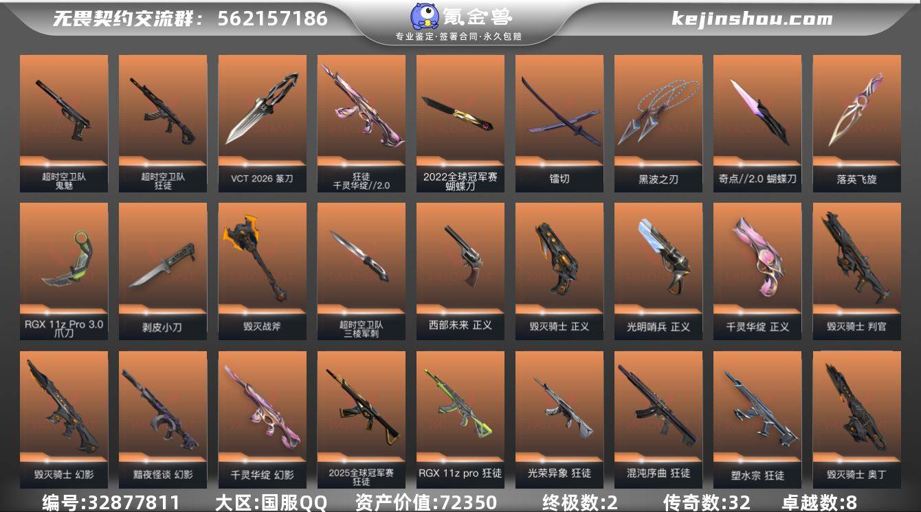 【自带包赔 可赔三倍】:库存价值 72350 三菱 黑波 26 篆刀 超多近战多主战 性价比库存号 【限定】: VCT 2026 篆刀, 2025全球冠军赛 狂徒, 2022全球冠军赛 蝴蝶刀 【近战】: VCT 2026 篆刀, 黑波之刃, 剥皮小刀, 超时空卫队 三棱军刺, 落英飞旋, RGX 11z Pro//3.0 爪刀, 镭切, 奇点//2.0 蝴蝶刀, 2022全球冠军赛 蝴蝶刀, 毁灭战斧 【狂徒】: 千灵华绽//2.0 狂徒, 光荣异象 狂徒, 2025全球冠军赛 狂徒, 奇幻朋克//3.0 狂徒, 超时空卫队 狂徒, 盖亚的复仇 狂徒, RGX 11z Pro 狂徒, 塑水宗 狂徒, 耀鳞威龙 狂徒, 混沌序曲 狂徒 【幻影】: 千灵华绽 幻影, 侦察力量 幻影, 黯夜怪谈 幻影, 神中神罚 幻影, 紫阙金琅//2.0 幻影, 毁灭骑士 幻影 【正义】: 西部未来 正义, 千灵华绽 正义, 光明哨兵 正义, 毁灭骑士 正义 【鬼魅】: 超时空卫队 鬼魅, 耀鳞威龙 鬼魅 【骇灵】: 堕天遗武 骇灵 【判官】: 毁灭骑士 判官 【奥丁】: 毁灭骑士 奥丁 【概要】: 总皮肤 125 终极 2传奇 32 卓越 8刀皮 10英雄 28 LV209 历史最高:铂金 当前段位:未定级 已使用 1525 R点 剩余 15R点 不可二次 卡面、挂饰、其他皮肤请看截图 道具、段位等以实际验号为准。如账号因没有维护,赛季更新...