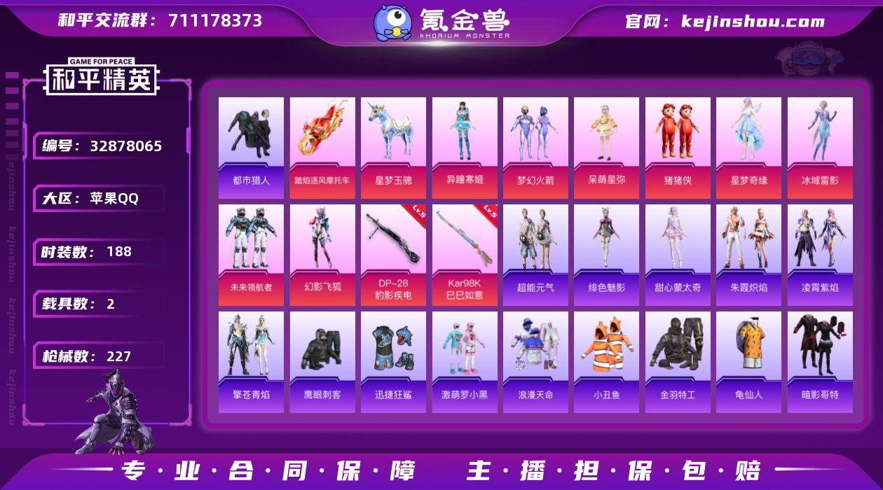 df苹果 手Q-【火箭头,都市猎人,蓝螳螂,哥特眼罩,1马皮,】8粉装-2特效枪-2载具-3粉色飞行器-68407热力值-16王牌印记-188套装-227枪皮 【热门品类】:粉装-梦幻火箭,套装-浪漫天命,套装-都市猎人,套装-小丑鱼,套装-金羽特工,套装-龟仙人,套装-暗影哥特,套装-糯粉咩咩,角色-Mark.06 【粉色套装】:粉装-梦幻火箭,角色-呆萌星弥,玩偶服-猪猪侠,角色-星梦奇缘,角色-冰域雷影,粉装-未来领航者,粉装-幻影飞狐,角色-异瞳寒姬 【粉色枪皮等级】:Kar98K-巳巳如意(五级),DP-28-豹影疾电(五级) 【粉色载具】:踏焰逐风摩托车,星梦玉骢 【粉色枪皮】:Kar98K-巳巳如意,DP-28-豹影疾电 【粉色飞行器】:炫彩糖果飞行器,灵珠游龙飞行器,暮色之舞飞行器 【粉色降落伞】:绝对恒星降落伞,梦幻火箭降落伞,星之彼岸降落伞,垂柳戏鸭降落伞,彩虹甜喵降落伞,青空秋雨降落伞,炫光之旅降落伞,江南烟雨降落伞,星梦奇缘降落伞,金丰海韵降落伞,忍者神龟降落伞,千金淑猫降落伞,幻影飞狐降落伞,幻彩电音降落伞,喜羊羊与灰太狼降落伞,魔童闹海 哪吒降落伞,炫彩糖果降落伞 【稀有套装】:套装-龟仙人,套装-超能元气,角色-甜心蒙太奇,套装-雪国风尚,套装-炫彩糖...