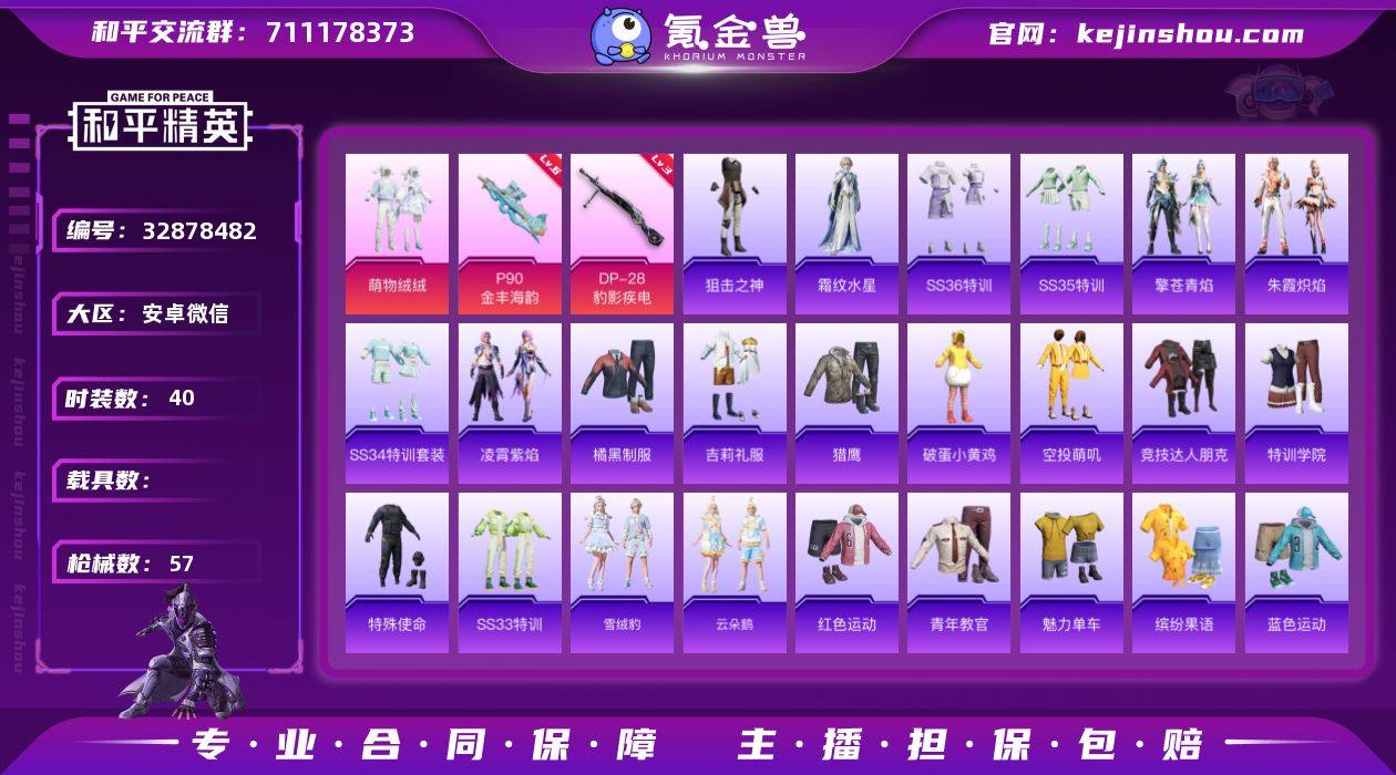 HT418(送王者1传说)【1粉装效2特枪+1蓝螳螂】安卓V-地铁声望30级 40套装57枪皮 16534热力值 历史荣耀皇冠Ⅲ【1粉装】萌物绒绒【2特效枪】P90-金丰海韵(6级) DP-28-豹影疾电(3级)【2飞行器】萌物绒绒飞行器 炫彩糖果飞行器【10热门】Mark.06 角色-霜纹水星 角色-绛羽幽主 擎苍青焰 破蛋小黄鸡 凌霄紫焰 朱霞炽焰 云朵鹅 雪绒豹 惊魂侠骨 锦衣飞扬 初机号觉醒头盔 未来歌姬降落 【安卓V王者】V2-38皮肤 72英雄【1传说】神树通天 1印记 6史诗 11限定【热门】涂山容容 冰冠公主 街头霸王 鬼剑武藏 驱傩正仪 沙漠行僧 金庭之子 魅力维加斯 水果甜心 天穹祈灯
