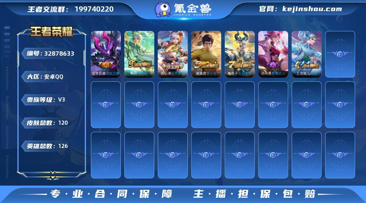 安卓Q 可二次 3传说126英雄120皮肤 神骥赴朔漠 鸣野蒿 地狱之眼 涂山容容 梁祝 诗语江南 黄忠百相守梦 灵蛊蚀心 真我赫兹镜 李小龙 水晶猎龙者 暗隐猎兽者 猫狗日记男 金属风暴 特工战影 蔷薇恋人 黄金分割率 妄想食味 逐浪之夏 心灵战警 修罗 千年之狐 紫霞仙子 幽灵船长 乘风破浪 圣诞狂欢 星夜王子 节奏热浪 暗夜贵公子 街头霸王 箭羽风息 缤纷独角兽 鬼剑武藏 王者荣耀账号