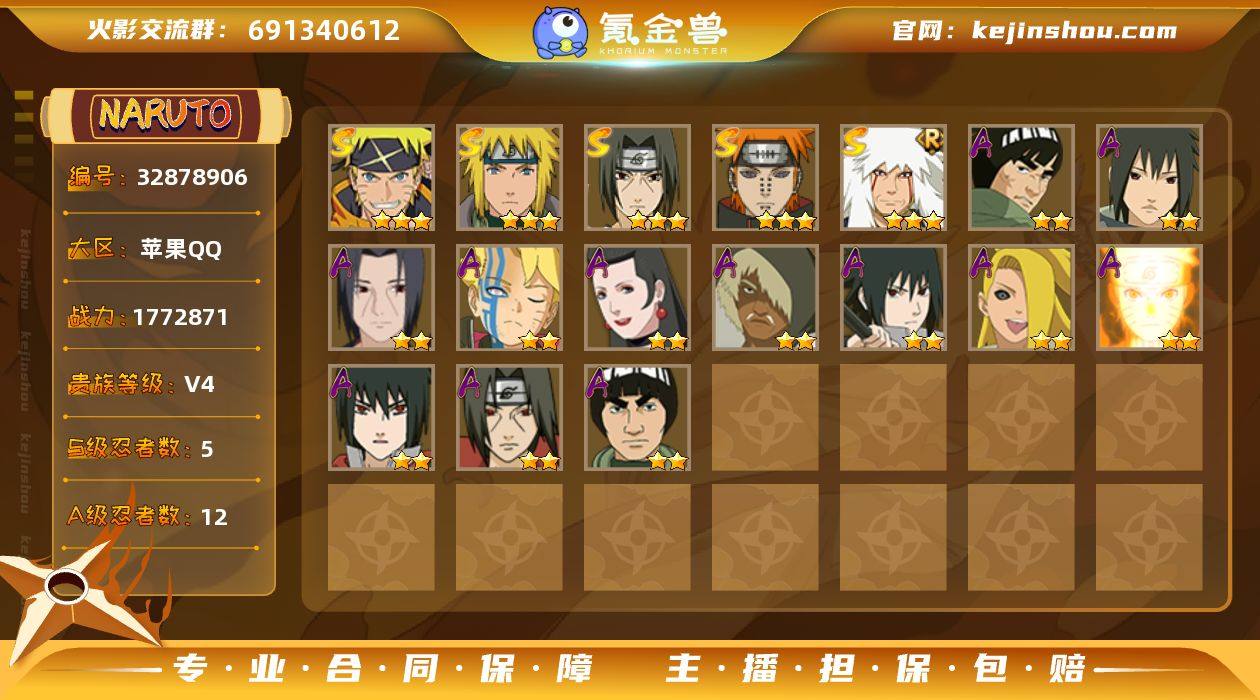 IOS/5S忍/12A忍/战力177W/V4/区服3551 【S忍者】 宇智波佐助「漩涡鸣人」,自来也「舞之豪杰」,宇智波鼬「须佐能乎」,佩恩「天道」,波风水门, 【A忍者】 迈特凯「青春爆炸」,不缘,漩涡博人「桃式显现」,宇智波鼬「夏日限定」,宇智波泉奈,达鲁伊「五代目雷影」,宇智波佐助「须佐能乎」,迪达拉「秽土转生」,漩涡鸣人「九尾查克拉」,宇智波佐助「万花筒写轮眼」,宇智波鼬,迈特凯, PX_2471024