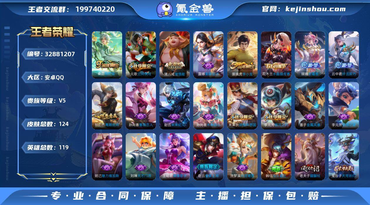 【WZX6426】贵族5/皮肤124/传说1/史诗20/英雄119/鸣野蒿/破阵·退雄兵/阴阳师/皇家上将/蔷薇恋人/云间偶戏/朔风刀(s17)/万华元夜(s22)/星际陆战队-达摩/沙漠行僧(s26)/海滩派对/醍醐杖(s20)/演武夺筹(s23)/潮玩骑士王/银河之约/驱傩正仪(s24)/原初探秘者(s21)/千军破阵(s25)/混沌棋(s18)/星空之诺/大漠名商(s28)/疑决卦(s19)/李小龙/胡桃异想国/纤云弄巧/猪悟能/拒霜思/探海日志(s32)/鬼谷子天穹祈灯(S34)/剑破天穹(s35)/噬灭天穹(s37)/月团寄思/鹰眼统帅/逐浪之夏/天才门将/水晶猎龙者/金属风暴/魅力维加斯/水果甜心/偶像歌手/未来纪元-赵云/紫霞仙子/雾都夜雨/功夫炙烤/完美运算/蔚蓝守将/刘邦虎啸剑宗/无双福将/潮玩牛仔/紫罗兰之誓/铁甲之心/乓乓大师/缤纷绘卷/瓷语鉴心/次元傲视/秘密基地/无尽征程/特工战影/圆桌骑士(盾山)/黑桃队长/次元突破/鲨炮海盗猫/丁香结/虹云星官/科学大爆炸/坚韧之力/制霸全明星/功夫老勺/命运角斗场/海滩丽影/汉昭烈帝/纽约教父/阿尔法小队/万象初新/兔女郎/死亡骑士/黄金武士/少女阿狸/玩偶对对碰/化身博士/白色死神/大发明家/街头霸王/教廷特使/赤焰之缨/孤猎/归虚梦演-蒙犽/归虚梦演-曜/荷鲁斯之眼/创世神祝/年年有余/露花倒影/灼热之刃/...