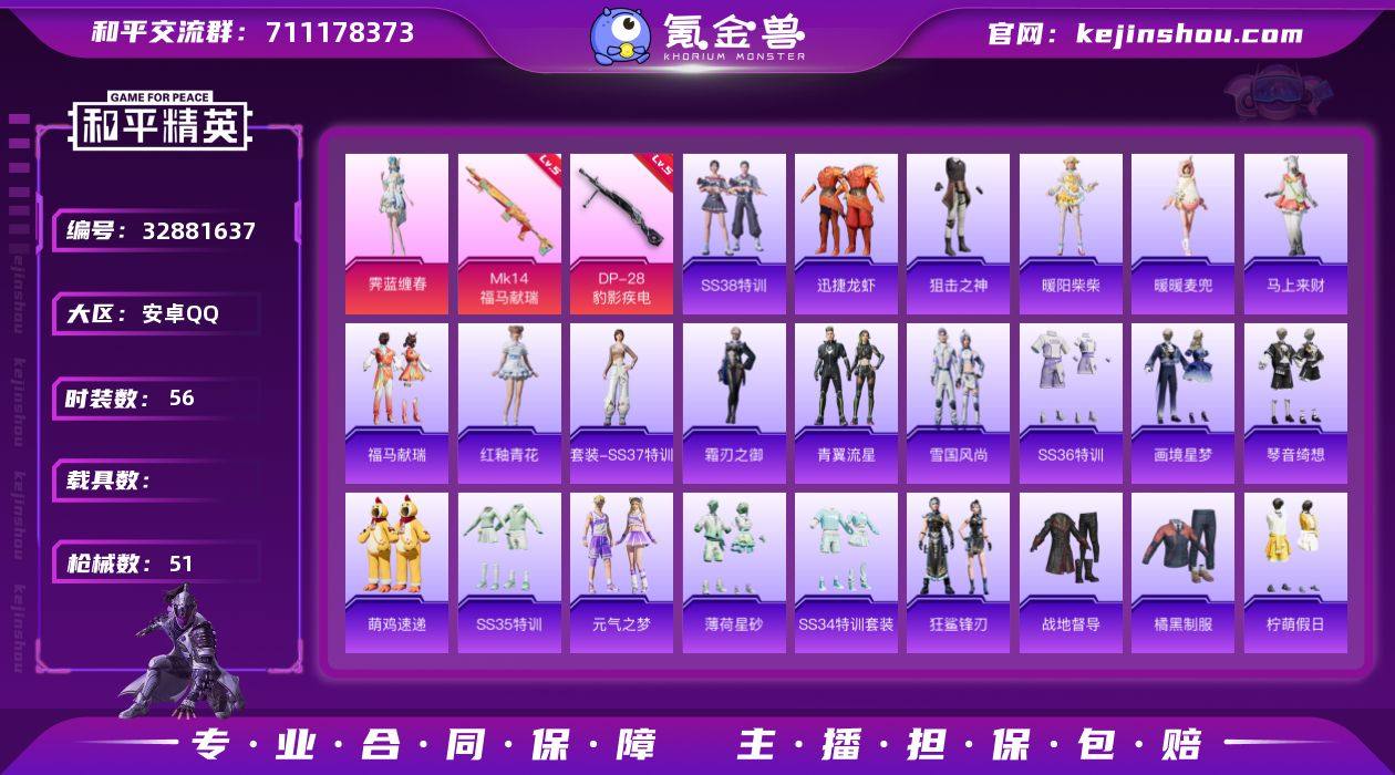 HT419【1粉装2特效枪】安卓Q-地铁声望30级 56套装51枪皮 14630热力值 2印记 1卓越 历史超级王牌7星【1粉装】霁蓝缠春【2特效枪】DP-28-豹影疾电(5级) Mk14-福马献瑞(5级)【1飞行器】炫彩糖果【8热门】角色-霜刃之雨 角色-暖阳柴柴 马上来财 破蛋小黄鸡 暖暖麦兜 雨过天晴 红釉青花 青翼流星 画镜星梦琴音绮想 炫彩糖果 狂鲨锋刃 雏菊兔兔 恋语绒绒香桃花海阳光火鸡迅捷龙虾 AKM-涂鸦街区 QBZ-洛神天依虹云熊熊降落伞