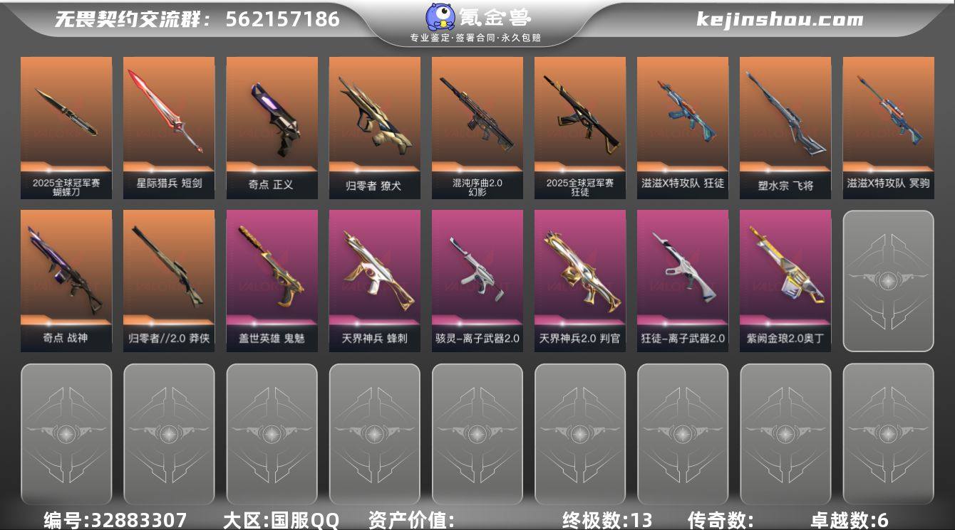 【qyz9756】可二次 玩够能回血 25套 3狂徒 qyz9756 【近战武器】:近战武器-2025全球冠军赛 蝴蝶刀,近战武器-碎心裂刃,近战武器-嘟昂嘟昂超弹力水球拳套,近战武器-星际猎兵 短剑 【狂徒】:狂徒-2025全球冠军赛,狂徒-滋滋X特攻队,狂徒-离子武器//2.0 【幻影】:幻影-混沌序曲//2.0 【獠犬】:獠犬-归零者 【冥驹】:冥驹-滋滋X特攻队 【飞将】:飞将-塑水宗 【莽侠】:莽侠-归零者//2.0 【战神】:战神-奇点 【奥丁】:奥丁-紫阙金琅//2.0 【判官】:判官-天界神兵//2.0 【骇灵】:骇灵-离子武器//2.0,骇灵-无限竞技 【蜂刺】:蜂刺-天界神兵 【正义】:正义-奇点 【鬼魅】:鬼魅-盖世英雄 【卡面】:无畏契约GO!第一卷:芮娜 卡面,无畏契约GO!第一卷:零 卡面,代号红色 卡面,新兵报到 卡面,V契约 卡面,无畏契约 卡面 【喷漆】:战“素”兔 喷漆,买装还是存钱 喷漆,无畏契约GO!第一卷:贤者 喷漆,暴走萝莉 喷漆,胜利属于无畏契约 喷漆,GLHF 喷漆,无畏契约 喷漆 【挂饰】:无畏契约GO!第一卷 零 挂饰,天外飞客 挂饰,《双城之战》魄罗 挂饰,无畏契约 纪念币 挂饰