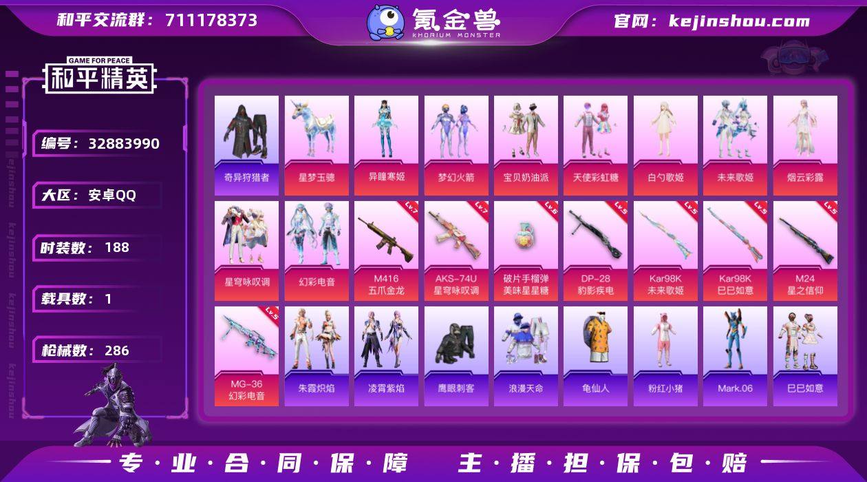YZJ16433-可二次-安卓Q-2稀有1载具9粉装10特效枪8热门188套装286枪皮 91599热力值 极品小女号 地铁满天赋 297扭蛋碎片未使用 星空马 新火箭少女 巧克力二姐妹 白勺歌姬 烟云彩露 未来歌姬 咏叹调 灵公主 蓝螳螂 满级M4五爪 满级AKS咏叹调 6级手雷美味星星糖 14印记 历史卓越王牌14星 【2稀有】 奇异狩猎者 浪漫天命 【1载具】 星梦玉骢 【9粉装】 梦幻火箭 宝贝奶油派 天使彩虹糖 异瞳寒姬 烟云彩露 未来歌姬 星穹咏叹调 白勺歌姬 幻彩电音 【10特效枪】 M416-五爪金龙 (7级) M24-星之信仰 (5级) AKS-74U-星穹咏叹调 (7级) Kar98K-巳巳如意 (5级) MG-36-幻彩电音 (5级) DP-28-豹影疾电 (5级) Kar98K-未来歌姬 (5级) Mk14-福马献瑞 (5级) ACE32-萌骑漫游 (5级) 【8热门】 Mark.06 龟仙人 雪山精英 鹰眼刺客 暗夜契约 粉红小猪 漫步者 破蛋小黄鸡 【3飞行器】 梦幻火箭飞行器 星之彼岸飞行器 深渊漩涡飞行器 【3头盔】 梦幻火箭头盔 深海小丑鱼头盔 马卡龙头盔 【3背包】 梦幻火箭背包 甜心宝贝背包 幻影战神背包 营地ID:750963411