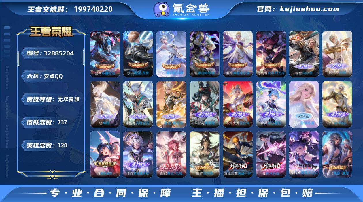 可换绑 【无双V11精品号7.7w流光积分44w贵族积分,737皮,1.5w战力达摩国服50强 1.3w战力曹操,满生肖皮,13无双,9珍品 ,11星传说,1天幕】240戳戳,按键88,1天幕,11星传说,25王者印记满级铭文,可二次KK10048,安卓Q-V11-737皮肤-6典藏皮肤-13无双-9珍品传说-141传说-263史诗【英雄全皮】:廉颇全皮,赵云全皮,墨子全皮,嬴政全皮,刘禅全皮,高渐离全皮,白起全皮,吕布全皮,元歌全皮,甄姬全皮,曹操全皮,典韦全皮,宫本武藏全皮,李白全皮,马可波罗全皮,狄仁杰全皮,达摩全皮,司马懿全皮,老夫子全皮,露娜全皮,姜子牙全皮,刘邦全皮,孙权全皮,王昭君全皮,兰陵王全皮,艾琳全皮,不知火舞全皮,朵莉亚全皮,娜可露露全皮,橘右京全皮,牛魔全皮,后羿全皮,刘备全皮,张飞全皮,钟馗全皮,杨玉环全皮,苍全皮,女娲全皮,东皇太一全皮,鬼谷子全皮,大乔全皮,黄忠全皮,铠全皮,苏烈全皮,百里玄策全皮,百里守约全皮,弈星全皮,公孙离全皮,沈梦溪全皮,明世隐全皮,狂铁全皮,米莱狄全皮,云中君全皮,李信全皮,伽罗全皮,盾山全皮,孙策全皮,猪八戒全皮,亚连全皮,嫦娥全皮,大司命全皮,马超全皮,敖隐全皮,海月全皮,曜全皮,西施全皮,蒙犽全...