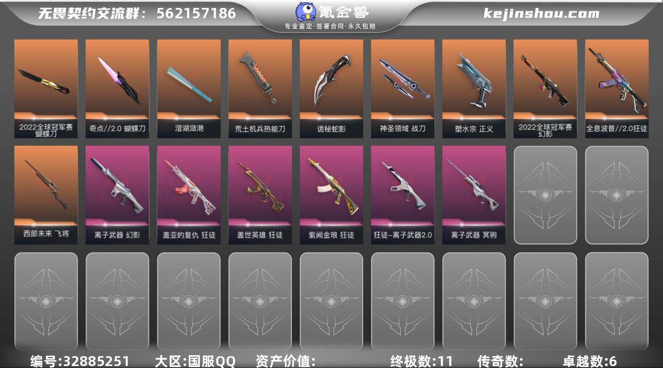 【945570】【套装】:2022全球冠军赛套装 【英雄】:幻棱,炼狱,暮蝶,钛狐,壹决,铁臂,捷风,幽影,不死鸟,贤者,猎枭,芮娜,尚勃勒,霓虹,星礈,盖可,黑梦,钢锁 【近战武器】:近战武器-2022全球冠军赛 蝴蝶刀,近战武器-奇点//2.0 蝴蝶刀,近战武器-镭切,近战武器-澄湖潋滟,近战武器-荒土机兵 热能刀,近战武器-诡秘蛇影 军刀,近战武器-神圣领域 战刀 【狂徒】:狂徒-全息波普//2.0,狂徒-盖世英雄,狂徒-盖亚的复仇,狂徒-紫阙金琅,狂徒-离子武器//2.0,狂徒-荒土机兵,狂徒-诡秘蛇影 【幻影】:幻影-2022全球冠军赛,幻影-离子武器,幻影-神圣领域,幻影-纳米打击,幻影-末日之翼 【戍卫】:戍卫-逆冲蛮牛,戍卫-月球哨兵,戍卫-折光棱晶 【獠犬】:獠犬-神圣领域,獠犬-逆冲蛮牛 【冥驹】:冥驹-离子武器,冥驹-荒土机兵,冥驹-星云暗涌 【飞将】:飞将-西部未来,飞将-末日之翼 【莽侠】:莽侠-诡秘蛇影,莽侠-月球哨兵 【战神】:战神-神圣领域 【奥丁】:奥丁-纳米打击,奥丁-末日之翼 【判官】:判官-诡秘蛇影,判官-纳米打击x 【雄鹿】:雄鹿-逆冲蛮牛,雄鹿-月球哨兵 【骇灵】:骇灵-荒土机兵,骇灵-星云暗涌 【蜂刺】:蜂刺-星云暗涌,蜂刺-折光棱晶...