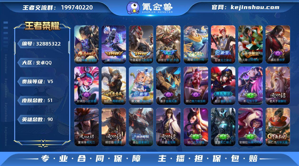 实名: 可修改 贵族等级: V5 英雄数: 90 皮肤数: 51 传说皮: 久胜战神,零号·赤焰,澜逐花归海,神骥·逐星野 亮点: 可换绑【V5极品小号·马超马限·澜逐花归海·零号赤焰】1按键 五级铭文70 可二次CD18614 安卓Q-V5-50皮肤-4传说-9史诗【传说皮肤】:马超神骥逐星野,澜逐花归海,孙悟空零号赤焰,干将莫邪久胜战神【限定皮肤】:狄仁杰阴阳师,赵云皇家上将,元歌云间偶戏,夏侯惇朔风刀,狄仁杰万华元夜,项羽海滩派对,老夫子醍醐杖,亚瑟潮玩骑士王,孙悟空零号赤焰,蔡文姬繁星吟游,鬼谷子原初探秘者,弈星混沌棋,明世隐疑决卦【赛季限定】:夏侯惇朔风刀,弈星混沌棋,明世隐疑决卦,老夫子醍醐杖,鬼谷子原初探秘者,狄仁杰万华元夜【战令限定】:元歌云间偶戏,亚瑟潮玩骑士王,周瑜线条小狗【史诗皮肤】:周瑜线条小狗,狂铁龙之律动,元歌云间偶戏,橘右京修罗,蔡文姬繁星吟游,狄仁杰鹰眼统帅,安琪拉心灵骇客,墨子金属风暴,妲己魅力维加斯,赵云皇家上将【其他皮肤】:张良缤纷绘卷,亚瑟潮玩骑士王,狄仁杰万华元夜,鬼谷子原初探秘者,老夫子醍醐杖,盾山圆桌骑士,明世隐疑决卦,弈星混沌棋,夏侯惇朔风刀,诸葛亮掌控之力,钟无艳海滩丽影,关羽龙腾万里,狄仁...