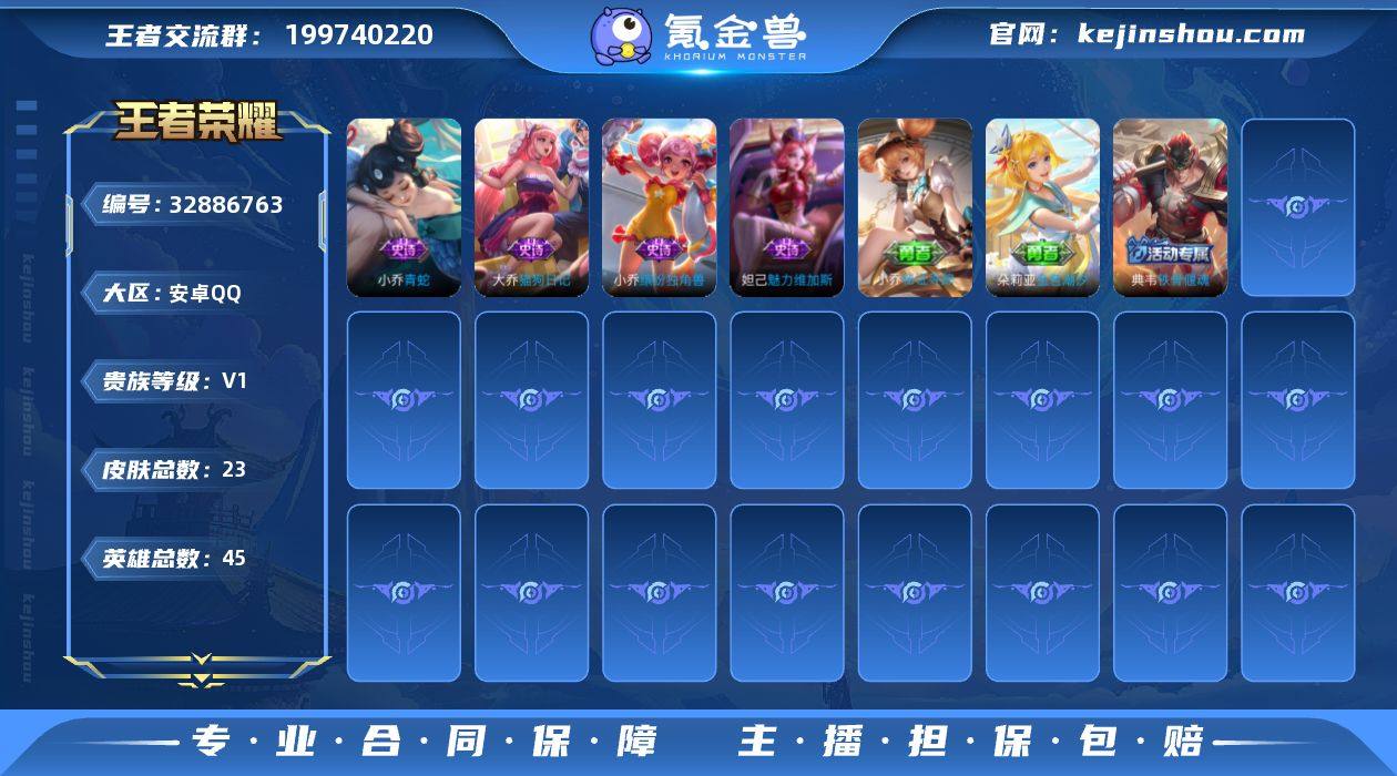 XQ1198+【猫狗日记 魅力维加斯 青蛇 缤纷独角兽 1太阳 无二次】安卓Q-V0-至尊星耀V-45英雄-23皮肤-4史诗 【稀有英雄】 娜可露露 艾琳 【史诗皮肤】 猫狗日记 魅力维加斯 青蛇 缤纷独角兽 【勇者皮肤】 阴阳师 古海寻踪 守护之力 天穹祈灯 金色潮汐 死亡骑士 玩偶对对碰 雪境奇遇 铁骨偃魂 【其他皮肤】 三太子 万圣前夜 福禄兄弟 精灵王 花间舞 归虚梦演 赤焰之缨