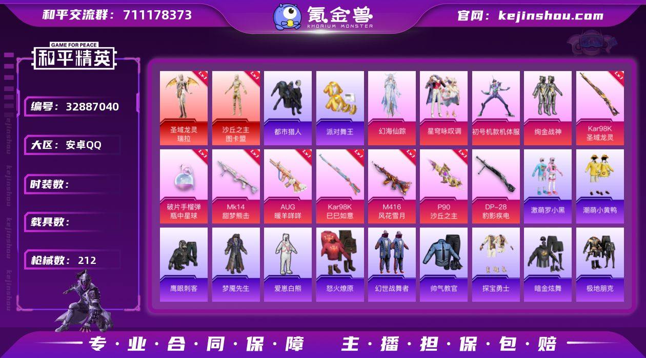 都市 金鞋 紫螳螂 满地铁天赋】c28846-【无二次】【因赛季更新游戏段付以上号为准!】 安卓Q-2红装4稀有4粉装11特效枪14热门166套装212枪皮 13印记 历史卓越王牌9星 【2红装】 圣域龙灵-瑞拉 (1级) 沙丘之主-图卡盟 (3级) 【4稀有】 都市猎人 浪漫天命 派对舞王 派对舞王(金靴子) 【4粉装】 紫螳螂 星穹咏叹调 幻海仙踪 绚金战神 【11特效枪】 P90-沙丘之主 (3级) AKS-74U-森灵之息 (5级) Kar98K-圣域龙灵 (2级) Kar98K-巳巳如意 (5级) DP-28-豹影疾电 (5级) AUG-暖羊咩咩 (5级) Mk14-甜梦熊击 (5级) M416-风花雪月 (5级) Mk14-福马献瑞 (4级) UMP45-萌骑冒险 (3级) 破片手榴弹-瓶中星球 (5级) 【14热门】 Mark.06 潮萌小黄鸭 爱崽白熊 梦魇先生 鹰眼刺客 激萌罗小黑 金羽特工 团圆交子 瑞龙福将 狂沙舞者 漫步者 破蛋小黄鸡 极速红龙 M762-瑞龙福将 【1飞行器】 龙翔九天飞行器 【1头盔】 金羽特工头盔 圣域龙宝僚机