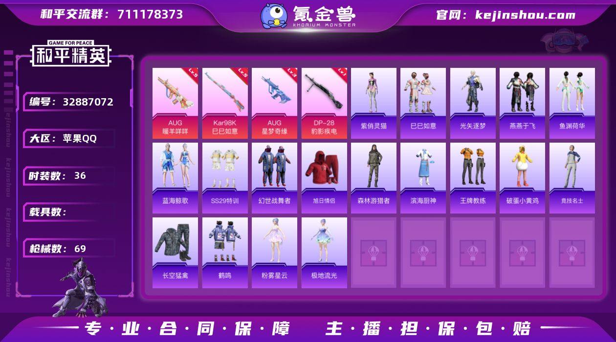 "XY732 有二次钱包无法注销 苹果Q-5特效枪1热门36套装69枪皮 17924热力值 4印记 历史卓越王牌7星 【5特效枪】 Kar98K-巳巳如意 (5级) DP-28-豹影疾电 (1级) AUG-暖羊咩咩 (5级) AUG-星梦奇缘 (3级) Mk14-福马献瑞 (5级) 【1热门】 破蛋小黄鸡 "