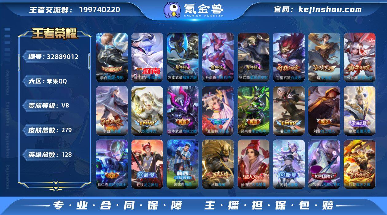【高性价比·鸣剑曳影·怪盗基德·寅虎赤拳·李逍遥·神骥逐星野·愿照千秋盛·愿照众生和·祈雪灵祝·白虎志·凤求凰·玄雷天君·云鹰飞将·无二次包过】w22107-苹果Q-128英雄-279皮肤-15王者印记-300铭文-贵族积分6w【贵族8】【1典藏·1珍品·3星传说·19传说·6按键】【因赛季更新游戏段付以上号为准!】 【英雄全皮】:孙权全皮 【荣耀典藏】:李白鸣剑曳影 【珍品传说】:马可波罗怪盗基德 【星元皮肤】:宫本武藏幽冥之眼,孙尚香未来机甲,狄仁杰星际治安官 【传说皮肤】:马超神骥逐星野,女娲愿照千秋盛,妲己愿照众生和,嬴政玄雷天君,桑启鸣野蒿,夏洛特浮生妄,李白诗剑行,裴擒虎寅虎赤拳,曜李逍遥 ,公孙离祈雪灵祝,镜炽阳神光,虞姬启明星使,曜云鹰飞将,刘备时之恋人,百里玄策白虎志,李白凤求凰,孙尚香末日机甲,宫本武藏地狱之眼,狄仁杰超时空战士 【限定皮肤】:白起狰,狄仁杰阴阳师,虞姬凯尔特女王,赵云皇家上将,赵云龙胆,鲁班七号狮舞东方,孙膑妖精王,扁鹊炼金王,芈月重明,芈月白晶晶,吕布御风骁将,元歌无心,夏侯惇朔风刀,甄姬游园惊梦,典韦穷奇,马可波罗暗影游猎,马可波罗山海玄木吟,狄仁杰魔术师,狄仁杰万华元夜,达摩沙漠行僧,项羽海滩派对,...