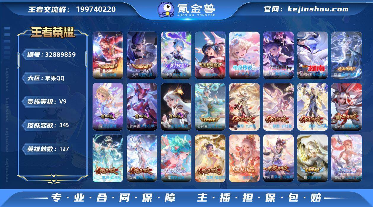 可换绑【V9极品女号·瑶大乔西施嫦娥全皮·金标瑶·游走44段·蛇年全套·2无双·2典藏·4珍品怪盗基德·朵莉亚心动日记·永恒水手月亮·孙尚香安琪拉大乔龙限·小乔兔限·祈雪灵祝·玉兔公主·3星元紫瑶·贵族积分12万】19按键 2天幕,3星传说,15王者印记,150五级铭文 无二次包过CD18960 苹果Q-V9-345皮肤-2典藏皮肤-2无双-4珍品传说-32传说-105史诗【英雄全皮】:大乔全皮,瑶全皮,嫦娥全皮,西施全皮,司空震全皮,戈娅全皮,海诺全皮【荣耀典藏】:小乔天鹅之梦,瑶拾光映像【无双皮肤】:小乔时之魔女,瑶真我赫兹【珍品传说】:安琪拉酷洛米之心,瑶大耳狗之梦,嫦娥器灵落星盏,马可波罗怪盗基德【星元皮肤】:孙尚香未来机甲,貂蝉金色仲夏夜,瑶时之愿境【天幕】:路在脚下天幕,金虎啸春天幕【传说皮肤】:公孙离云诺千山,西施续相思,司空震愿照山河定,女娲愿照千秋盛,妲己愿照众生和,澜愿照九州拓,蔡文姬愿照福禄聚,虞姬愿照岁时盈,王昭君映山客,桑启鸣野蒿,朵莉亚心动手记,貂蝉曦玄引,孙尚香乘龙问璇玑,露娜霜月吟,孙膑小动物乐团,王昭君永恒水手月亮,大乔时之奇旅,安琪拉追逃游戏,公孙离记忆之芯,小乔山海琳琅生,大乔挚爱花嫁,蔡文姬花朝如约,瑶时之祈...