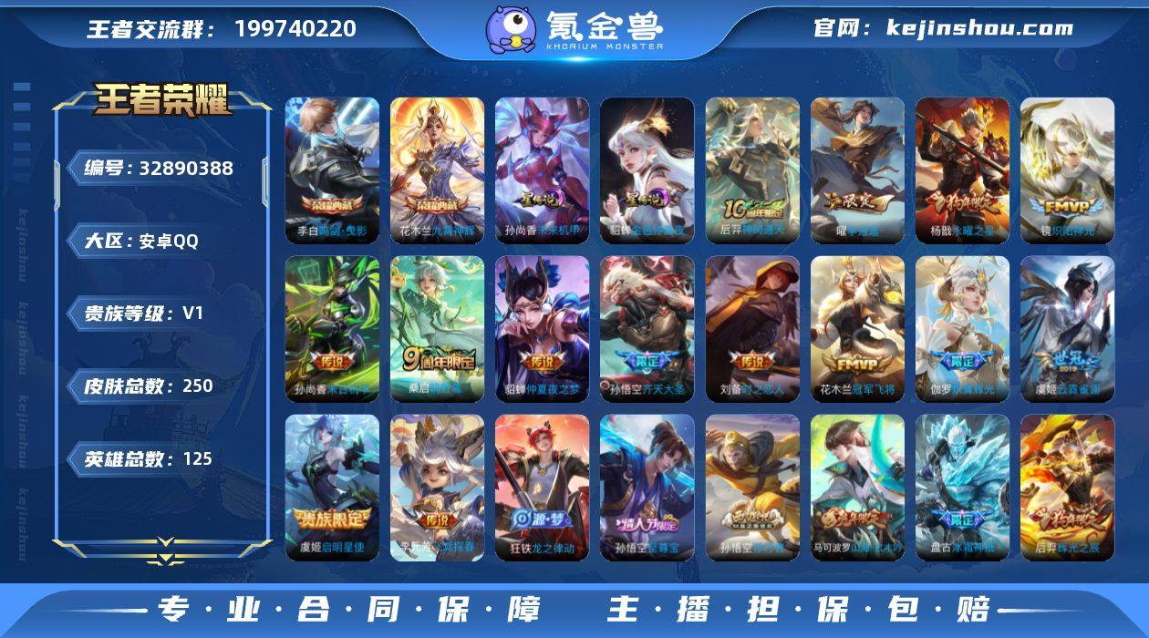 可二次【特价出售/店主推荐】:安卓Q-V0-至尊星耀V段位-125英雄-250皮肤-2典藏皮肤-2星元-14传说-64史诗 【荣耀典藏】:李白鸣剑曳影,花木兰九霄神辉 【传说皮肤】:后羿神树通天,桑启鸣野蒿,伽罗炽翼辉光,孙悟空齐天大圣,曜李逍遥 ,李元芳飞鸢探春,镜炽阳神光,虞姬启明星使,刘备时之恋人,虞姬云霓雀翎,花木兰冠军飞将,杨戬永曜之星,貂蝉仲夏夜之梦,孙尚香末日机甲 【限定皮肤】:白起狰,狄仁杰阴阳师,小乔纯白花嫁,虞姬凯尔特女王,赵云皇家上将,嬴政优雅恋人,嬴政白昼王子,孙尚香蔷薇恋人,庄周蜃楼王,庄周高山流水,高渐离死亡摇滚,孙膑妖精王,扁鹊炼金王,吕布猎兽之王,周瑜真爱至上,元歌无心,夏侯惇朔风刀,曹操烛龙,典韦穷奇,马可波罗山海玄木吟,狄仁杰魔术师,狄仁杰万华元夜,达摩沙漠行僧,项羽海滩派对,老夫子醍醐杖,程咬金演武夺筹,兰陵王金庭之子,亚瑟狮心王,孙悟空至尊宝,孙悟空孙行者,孙悟空齐天大圣,牛魔御旌,后羿辉光之辰,后羿圣弓游侠,李元芳云中旅人,虞姬启明星使,钟馗驱傩正仪,杨玉环遇见飞天,杨戬永曜之星,干将莫邪真爱魔法,雅典娜单词大作战,雅典娜黎明之约,太乙真人饕餮,鬼谷子原初探秘者,鬼谷子五...