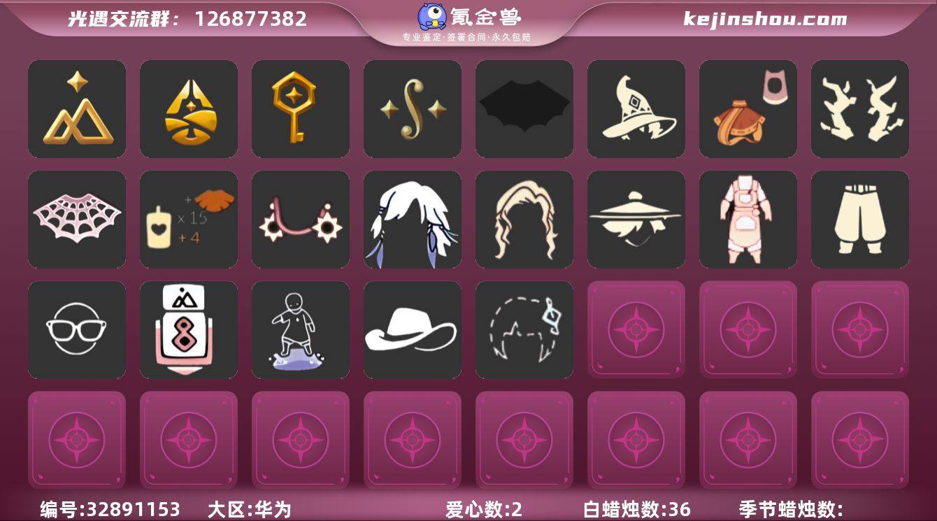 账号类型: 手机账号 季节已毕业: 拾光季,归巢季,筑巢季,二重奏季 完成地图: 晨岛,雨林,霞谷 珍稀物品: 彩虹围巾 礼包: 蝙蝠套,巫师,风之旅人,枯角,透明蛛丝,创始人,日光耳环 裤子: 武士裤,筑巢季·裤子 面饰: 黑框眼镜 发型: 归巢毕业发型,若笠,虚荣 头饰: 牛仔帽,蓝色音乐会 配饰: 筑巢季·小手办,相机 亮点: 【优质装备】:武士裤,归巢毕业发型(五塑彩羽发),筑巢季·小手办(光之子试衣),牛仔帽(西部帽),相机(季卡相机),拾光季,彩虹围巾(五塑彩带斗),归巢季,筑巢季,二重奏季,筑巢季·裤子(设计师长袍),黑框眼镜(粗框眼镜),蝙蝠套(蝙蝠斗篷)(南瓜头),风之旅人(风之旅人礼包),透明蛛丝(透明蜘蛛斗),巫师(巫师帽),枯角(巫树犄角),晨岛,雨林,霞谷,若笠(箬笠),创始人(创始人斗篷),日光耳环