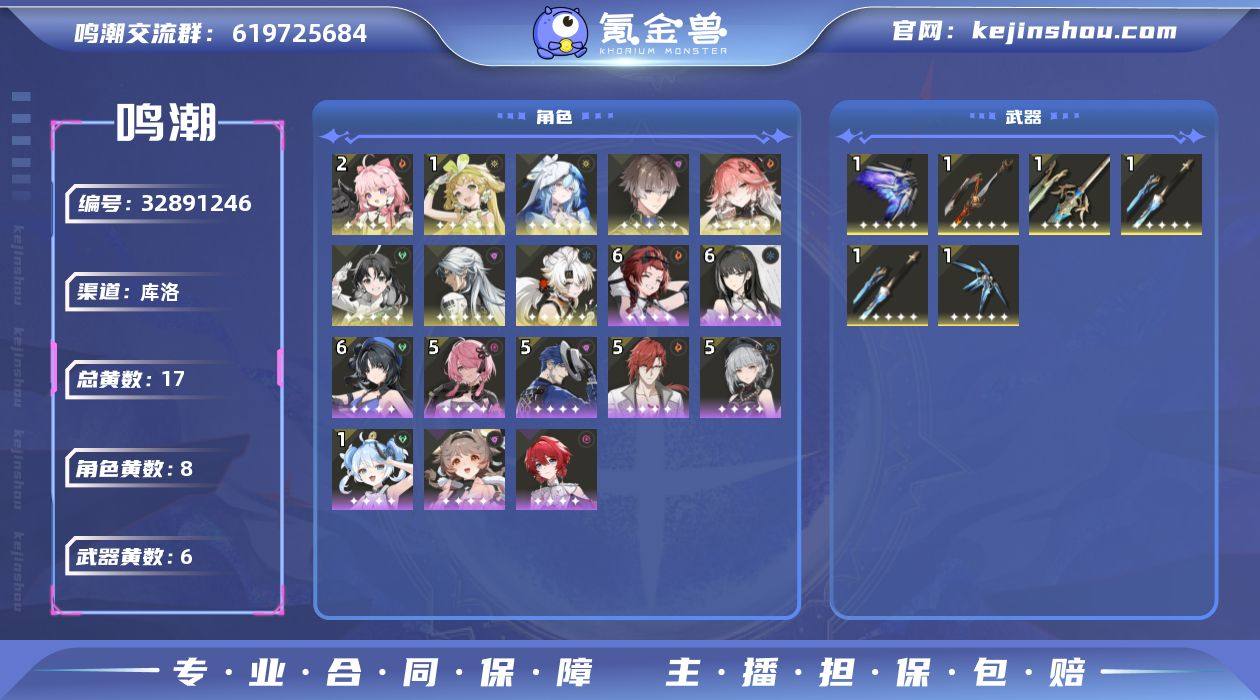 开服玩家囤囤鼠号,3000月相,16万+星声,242浮金波纹,55铸潮波纹,马上快1400抽了,526余波珊瑚(可换两个五星角色),到周年庆至少能抽三个满命角色,2万调谐器,153个调频仪,声骸箱子快2000个。各种物资箱子培养材料根本用不完,抽到角色能直接拉满。地图还有很多没有探索,估计还能有个几万星声,详细可看图,卖出去之前会一直玩,资源只多不少。安全可放心。