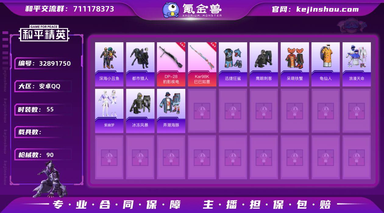 DSH2461【 身法号5特 鲨鱼裤 深海小丑鱼 红眼罩 浪漫天命 都市猎人】安卓手Q-5特效枪-55套装-90枪皮-1王牌印记-不朽星钻Ⅴ-21867热力值【5特效枪】AKS-74U-森灵之息[5级],DP-28-豹影疾电[5级],Kar98K-巳巳如意[4级],Mk14-福马献瑞[5级],ACE32-萌骑漫游[2级]【6稀有】都市猎人,深海小丑鱼,暗影哥特,TT战队服,浪漫天命,AKM-缤纷海域【3飞行器】破刃行动尾迹,云朵驼驼飞行器,马上有福飞行器【1头盔】深海小丑鱼头盔【134其它衣服和枪皮】蓝冰羽,SS34特训,福马献瑞,清新柠檬,黑色伏地魔,阳光火鸡,龟仙人,蝶变,角色-阿虎,冰冻风暴,薄荷星砂,角色-幸运青,云朵鹅,小财神当家,绯格组合,海盐绵绵冰,夏日倾情,SS35特训,雨过天青,雪绒豹,角色-X,鹰眼刺客,弄潮海豚,黄色运动,玩偶服-会说话的汤姆猫,白熊同盟,星途旅人,顶瓜瓜,冷焰舞者,SS37特训,街头潮人,绮丽涂鸦,狙击之神,红釉青花,SS36特训,魅力单车,迅捷狂鲨,SS33特训,白色伏地魔,老实芭蕉,冰川特警,马上有钱,龙魂突击队,角色-罗莉,小鸟芋圆,海岛探路者,冰河战士,紫幽梦,呆萌铁蟹,角色-奈斯,AC-VAL-女王,Mk14-薄荷星砂,AUG-紫晶流影,PKM-雨过天青,Kar98K-影袭,UZI-冰河战士,P90-紫矿核心,ARX-像素花束,P90-玩趣呆呆,AKM-破晓战魂,M24-影...