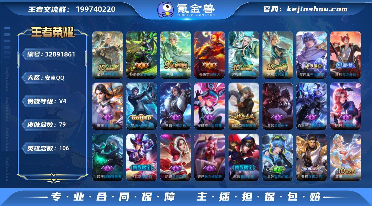 贵族等级:V4 典藏皮肤数:0 珍品无双皮肤数:0 无双皮肤数:0 珍品传说皮肤数:0 传说皮肤数:4 史诗皮肤数:17 皮肤数:79 英雄数:106 段位:星耀 卖家说:和平精英也有成品号
