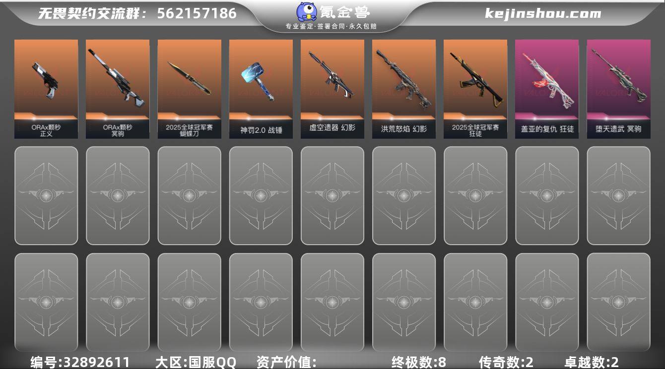 【945762】【套装】:2025全球冠军赛套装 【英雄】:幻棱,炼狱,暮蝶,壹决,捷风,雷兹,不死鸟,贤者,猎枭,芮娜,奇乐,尚勃勒,霓虹,斯凯,夜露,K/O,钢锁 【近战武器】:近战武器-2025全球冠军赛 蝴蝶刀,近战武器-碎心裂刃,近战武器-黑波之刃,近战武器-威龙之刃,近战武器-神罚//2.0 战锤 【狂徒】:狂徒-2025全球冠军赛,狂徒-盖亚的复仇 【幻影】:幻影-洪荒怒焰,幻影-虚空遗器 【冥驹】:冥驹-ORA x 颗秒,冥驹-堕天遗武 【骇灵】:骇灵-无限竞技 【标配】:标配-神罚 【正义】:正义-ORA x 颗秒 【卡面】:孵化小能手:破壳鸭 卡面,《双城之战》拥抱 卡面,精灵大战 卡面,欢迎来到底城 卡面,南瓜盛典 卡面,Clutch 卡面,无畏契约GO!第一卷:芮娜 卡面,无畏契约GO!第一卷:零 卡面,无畏契约GO!第一卷:贤者 卡面,代号红色 卡面,新兵报到 卡面,V契约 卡面,无畏契约 卡面 【喷漆】:孵化小能手:破壳鸭 喷漆,都算到了 喷漆,控场勿近 喷漆,买装还是存钱 喷漆,无畏契约GO!第一卷:芮娜 喷漆,暴走萝莉 喷漆,松叶 喷漆,放下武器 喷漆,胜利属于无畏契约 喷漆,GLHF 喷漆,无畏契约 喷漆 【挂饰】:孵化小能手:破壳鸭 挂饰,第九季//第三幕 纪...
