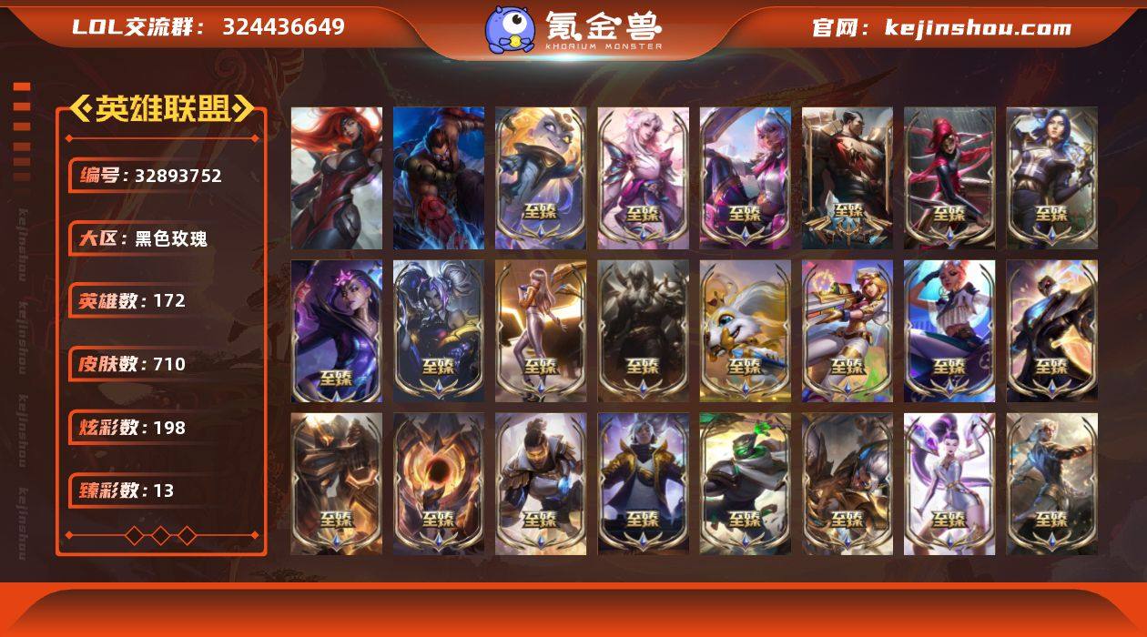 t38897 皇冠号【黑色玫瑰】710皮肤 198炫彩 13臻彩 49神话/92限定/60传说/172英雄 账号等级:812 云顶神话:2【重要头像】觅心之翼奎因 我麦是开的么 KDA阿狸 KDA阿狸炫彩 沐浴震惊 可爱安妮 至臻青花瓷丽桑卓 至臻海珀利安小队迦娜 至臻星之守护者辛德拉 至臻KDA卡莎 【重要皮肤】机神玄武盖伦至臻 永恒星灵佐伊至臻 灵魂莲华拉克丝至臻 战斗学院奇亚娜至臻 凯旋将军德莱厄斯至臻 黑色玫瑰假面舞会卡特琳娜至臻 双城之战2指挥官凯特琳至臻 暗星女王黛安娜至臻 魔域梦魇泽丽至臻 西部魔影伊芙琳至臻 心之钢永恩至臻 DRX亚托克斯至臻 墨之影武者亚索至臻 花仙使者卡特琳娜至臻 剪纸仙灵希维尔至臻 青花瓷丽桑卓至臻 北极星使者沃里克至臻 至高天奎桑提至臻 灵魂莲华易至臻 海珀利安小队X09星环灵风迦娜至臻 星之守护者辛德拉至臻 星之守护者艾克至臻 西部魔影猎天使恶魔泰隆至臻 月蚀骑士赛娜至臻 未来战士卢锡安至臻 真实伤害亚索至臻 暗星墨菲特至臻 神龙尊者炎龙瑟提至臻 黑夜使者凯隐至臻 征服者贾克斯至臻 KDA二代卡莎至臻 KDA一代卡莎至臻 电玩女神凯特琳至臻 真实伤害奇亚娜至臻 绒毛菲兹至臻 腥红之月亚托克斯至臻 未来...