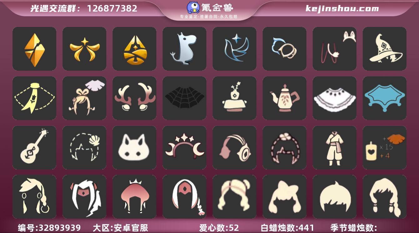 编号AY436-436 安卓手机 换绑CD4.26 详情请看衣柜截图 蜡烛数:441 爱心数:52 季节已毕业:破晓季 欧若拉季 归巢季 青鸟季 双星季 姆明季 珍稀物品:透明蝶翼斗 完成地图:雨林 霞谷 礼包:暗彩装扮 姆明饰品套装 水母头 巫师 绊爱 贝壳 兔子 四叶草 星月头饰 彩虹耳机 鹿角 围巾 创始人 蜘蛛斗 瑞雪 白绒金 吉他 茶桌 茶壶 裤子:遥鲲裙 白色背心套装 蓝绿裤 采药人裤 古风裤 姆明季·裤子 妮妮裙子 青鸟伐木不舍裤子 海浪长裤 遥鲲沙滩短裤 毛靴裤 灯笼椒 紧身裤 武士裤 猫猫裤 小丑裤 猎手长袍 鞋子:凉鞋 长筒凉鞋 人字拖 姆明季·鞋子 青鸟伐木不舍鞋子 万圣鞋 芭蕾鞋 面具:矮人面具 黄鼠狼 老头面具 黄眉企鹅面具 黑脸白眉面具 忧郁脸面具 白环面具 红色条纹面具 蓝色条纹面具 白色条纹面具 贴花面具 玫瑰面具 黑脸 面饰:蔚蓝眼镜 青鸟毕业面饰 青鸟占卜智慧面饰 发型:公主 粗辫 书虫 正太 高马尾 明制 若笠 花环 虚荣 冥龙长辫 遥鲲长辫 皇冠水母头 吊环双辫发型 樱花 猫耳 头饰:羽毛装饰 蝴蝶结 黄色蝴蝶结 花环 太阳帽 小黄帽 红耳机 斗篷:红金 黑金 白金 黄色蓑衣 半边围巾斗篷 冥龙斗篷 水母斗篷 遥鲲短斗篷 遥鲲长斗 小熊猫分体斗篷 姆明季·斗篷樱花斗...