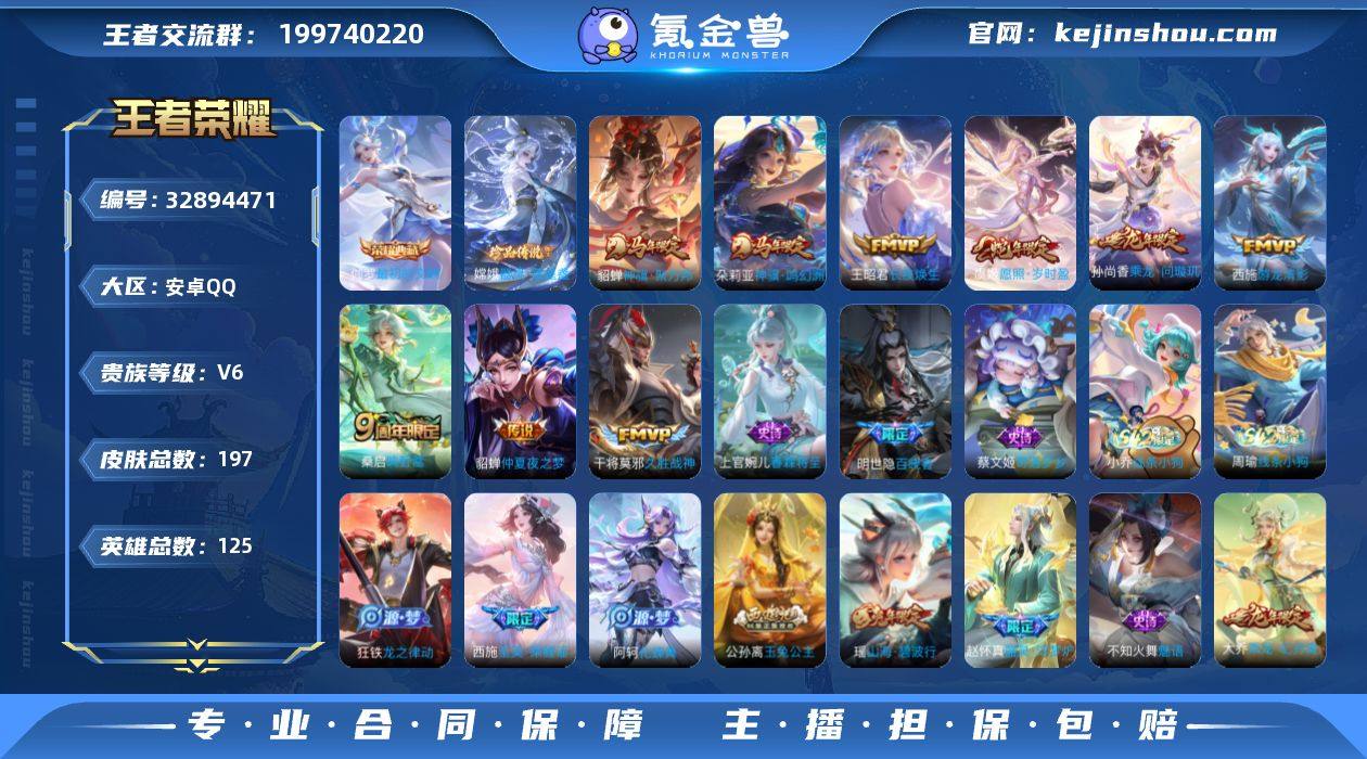 【981】女生精品小号 V6-125英雄-197皮肤-1典藏皮肤-1珍品传说-9传说-53史诗 cc8522 【英雄全皮】:孙权全皮,敖隐全皮,空空儿全皮 【荣耀典藏】:伽罗最初的交响 【珍品传说】:嫦娥器灵落星盏 【传说皮肤】:朵莉亚神骥鸣幻洲,貂蝉神骥聚万邦,王昭君长夜焕生,虞姬愿照岁时盈,桑启鸣野蒿,孙尚香乘龙问璇玑,西施游龙清影,干将莫邪久胜战神,貂蝉仲夏夜之梦 【限定皮肤】:大乔绒语心约,姜子牙天穹之誓,狄仁杰阴阳师,赵云皇家上将,孙尚香蔷薇恋人,高渐离玩趣恶龙,元歌无心,狄仁杰魔术师,狄仁杰万华元夜,项羽海滩派对,程咬金演武夺筹,兰陵王金庭之子,李元芳云中旅人,钟馗驱傩正仪,杨玉环寅虎心曲,鬼谷子五谷丰年,梦奇顽趣,公孙离玉兔公主,沈梦溪大漠名商,裴擒虎擒涛扼浪,瑶山海碧波行,上官婉儿梁祝,西施至美乘鲤谣,鲁班大师探海日志,桑启海盐诗旅,阿古朵江河有灵,张良古海寻踪,蒙犽百解令,妲己灵卜魔法,鬼谷子天穹祈灯,大乔乘龙忆丹青,孙尚香乘龙问璇玑,刘邦剑破天穹,周瑜熔金海岸 【年限皮肤】:杨玉环寅虎心曲,瑶山海碧波行,孙尚香乘龙问璇玑,大乔乘龙忆丹青,虞姬愿照岁时盈 【赛季限定】:狄仁杰万华元夜,程咬金演武夺筹,钟...