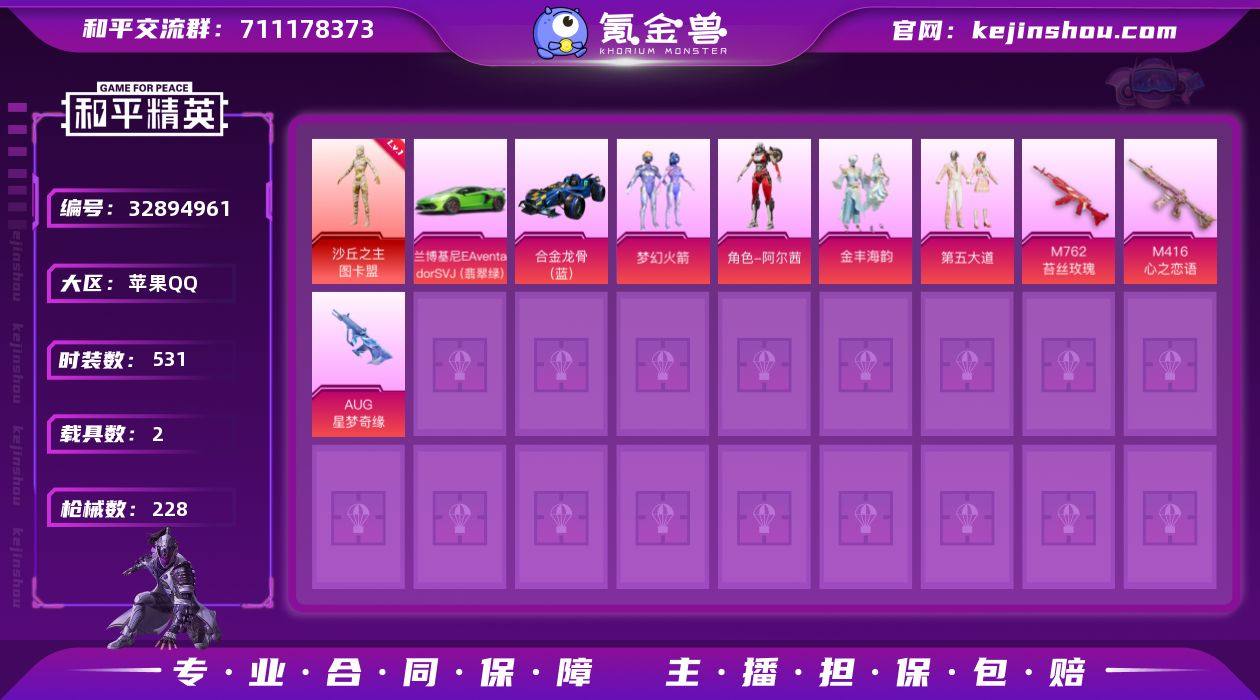 【稀有枪皮】GROZA-精灵之光,M200梦海之灵,AUG星梦奇缘,Kar98K-巳巳如意,AA12-G-萌骑幻想,MK14-福马献瑞,DP-28-豹影疾电,AKM-暮色玫影,M416心之恋语,SCAR-L纯梦嫁纱