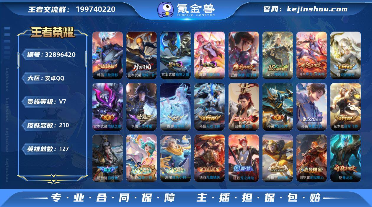 安卓qq 贵7 127英雄 210皮肤 1典藏 1珍品12传说53史诗皮 韩信弑枪猎影 宫本黑崎一护 地狱之眼 云缨 神骥越千锋 吕布曦玄引 孙策乘龙吴钩 露娜霜月吟 马超无双飞将 孙策520挚爱之约 末日机甲 镜炽阳神光 李信一念神魔 花木兰冠军飞将 海诺心动手记 百里玄策原初追逐者 花木兰魅惑语 凯青龙志 元流之子 烛愿九天 虞姬无限倾慕 宫本幽冥之眼 嘉儿宝灵宝 龙限 蛇限灵宝