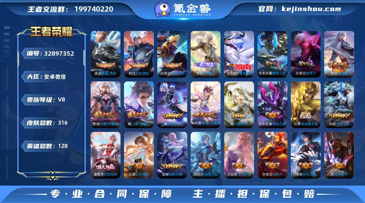 ·千魇归渊·鸣剑曳影·弑枪猎影·无相·碎月剑心·怪盗基德·山海苍雷引·山海炽霜斩·乘龙问璇玑·逐花归海·齐天大圣·财神纳福天幕·可二次】w17964-安卓WX-128英雄-316皮肤-16王者印记-240铭文-贵族积分9w【贵族8】【4典藏·2无双·1珍品·2星传说·23传说·2天幕·10按键】【因赛季更新游戏段付以上号为准!】 【英雄全皮】:李白全皮,孙权全皮,敖隐全皮,蒙恬全皮,影全皮 【荣耀典藏】:孙悟空全息碎影,李白鸣剑曳影,韩信弑枪猎影,吕布千魇归渊 【无双皮肤】:孙悟空无相,李白碎月剑心 【珍品传说】:马可波罗怪盗基德 【星元皮肤】:孙悟空幽冥火,宫本武藏幽冥之眼 【天幕】:财神纳福天幕,共赏芳华天幕 【传说皮肤】:后羿神树通天,澜愿照九州拓,云缨幻光神枪,桑启鸣野蒿,孙尚香乘龙问璇玑,澜逐花归海,孙悟空齐天大圣,曜山海苍雷引,李信山海炽霜斩,李白诗剑行,马超无双飞将,王昭君乞巧织情,周瑜音你心动,铠绛天战甲,镜炽阳神光,虞姬启明星使,貂蝉猫影幻舞,达摩黄金狮子座,诸葛亮武陵仙君,李白凤求凰,宫本武藏地狱之眼,孙悟空地狱火,武则天海洋之心 【限定皮肤】:姜子牙天穹之誓,李白谪仙醉月,狄仁杰阴阳师,赵云皇家上将,庄周高山流水,高渐离玩趣恶...