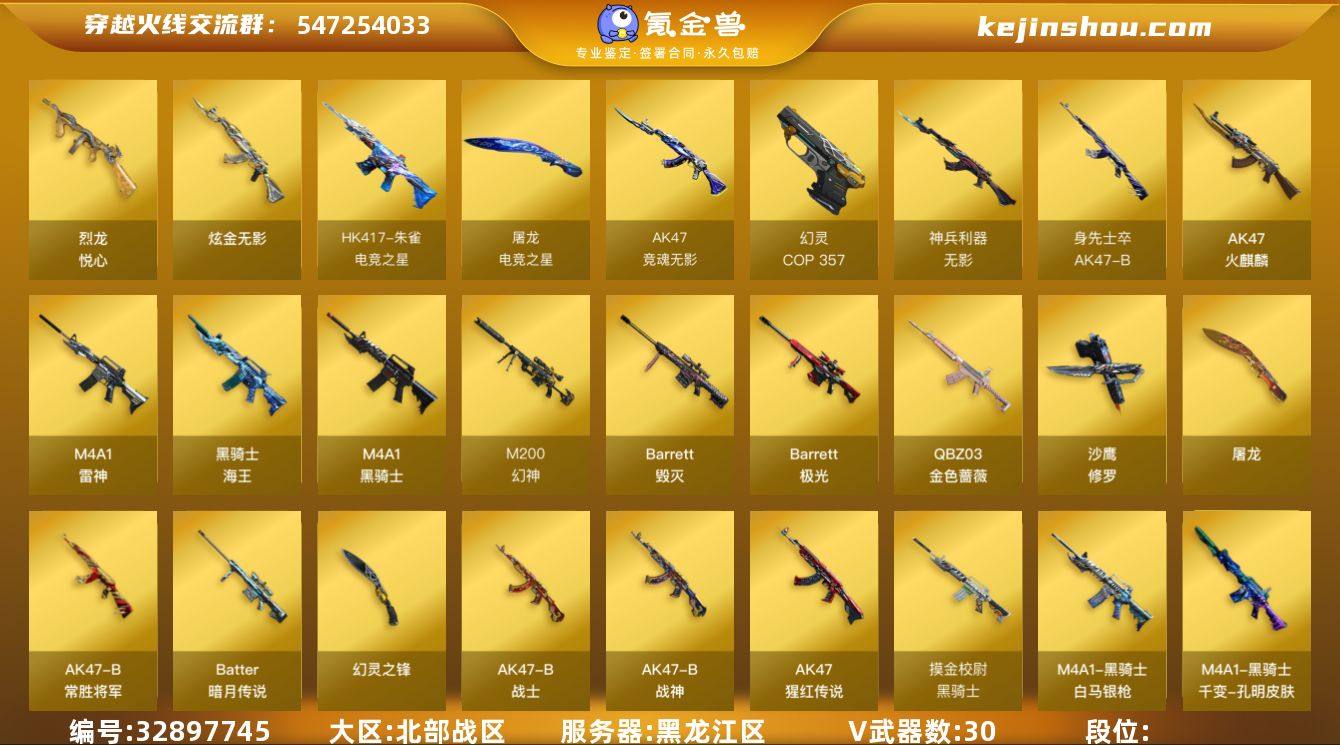 北部战区(黑龙江区)ys【精品爆破号】30v【M200-幻神+皮/电竞之星,QBZ03-金色蔷薇+音效卡,HK417-朱雀-电竞之星+音效卡,COP357-幻灵,QBZ03-吕布,Colt1911-大黄蜂,猫猫手套】1王者【烈龙-悦心】1炫金【炫金无影】4角色【战地猎狐,幻面灵狐,王者樱-热浪之夏,修道士,四防灵狐者-职业经理,樱-青春偶像】5音效【QBZ03-金色蔷薇-竞星悦动音效卡,屠龙-电竞之星-竞星悦动音效卡,HK417-朱雀-电竞之星-竞星悦动音效卡,M4A1-黑骑士音效卡,M4A1-雷神音效卡】33皮【幻神-电竞之星,黑骑士-白马银枪,雷神-机甲刑天,黑骑士-摸金校尉,雷神-机甲刑天,火麒麟-百城,火麒麟-心动糖果,毁灭-神秘黑洞,火麒麟-雷神,雷神-耀金,毁灭-星空,火麒麟-传奇EVEN,毁灭-青帝,千变-孔明,火麒麟-平天大圣,火麒麟-AG战队,毁灭-黑大圣,火麒麟-CF STAR,修罗-CF STAR,天龙-CF STAR,天龙-传奇70KG】截图展示段位不代表实际段位 如赛季更新等不可抗拒因素发生变化、时限道具不保证所剩时间