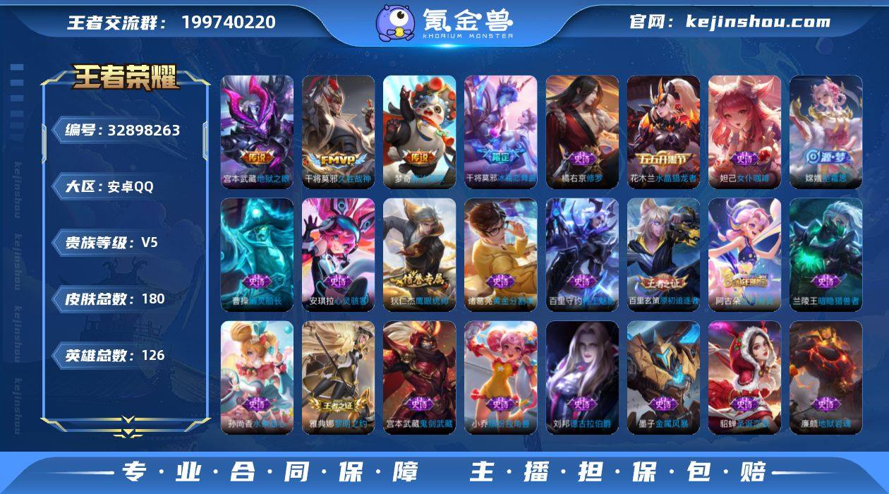 [18154783]V5 4传说 126英雄 180皮肤 可修改实名 女号 【英雄全皮】孙权全皮,大禹全皮 【稀有英雄】大司命,韩信(韩跳跳),夏洛特(夏师傅),艾琳,橘右京(橘子),娜可露露(鸟人),不知火舞,赵云,金蝉(唐僧),戈娅 【传说皮】神树通天,地狱之眼,久胜战神,胖达荣荣 【珍宝阁皮】蔷薇恋人,女武神 【赛季/战令皮】古海寻踪(s33),海盐诗旅(s30),擒涛扼浪(s31),探海日志(s32),顽趣-梦奇,天穹祈灯(s34),朔风刀(s17),混沌棋(s18),疑决卦(s19),醍醐杖(s20),原初探秘者(s21),万华元夜(s22),演武夺筹(s23),驱傩正仪(s24),千军破阵(s25),圣弓游侠,真爱魔法,沙漠行僧(s26),金庭之子(s27),大漠名商(s28),云中旅人(s29) 【史诗皮】织梦人,线条小狗-周瑜,万灵启世,黄金分割率,特工魅影,江河有灵,末日机甲-吕布,乱世虎臣,节奏热浪,修罗,女仆咖啡,摇滚巨星,水果甜心,天才门将,心灵骇客,德古拉伯爵,暗隐猎兽者,幽灵船长,鬼剑武藏,地狱岩魂,拒霜思,缤纷独角兽,水晶猎龙者,金属风暴,原初追逐者,圣诞恋歌,鹰眼统帅,魅力维加斯,黎明之约,无心 【限定皮】高山流水,五谷丰年,游园惊梦,李小龙,冰霜恋舞曲 【普通皮】星梦巡礼,劲辣红锅,功夫炙烤,街头霸王,荣光之誓,径山谋武,鹤鸣心笺,溯影追猎,罗小黑战记-哪吒,...