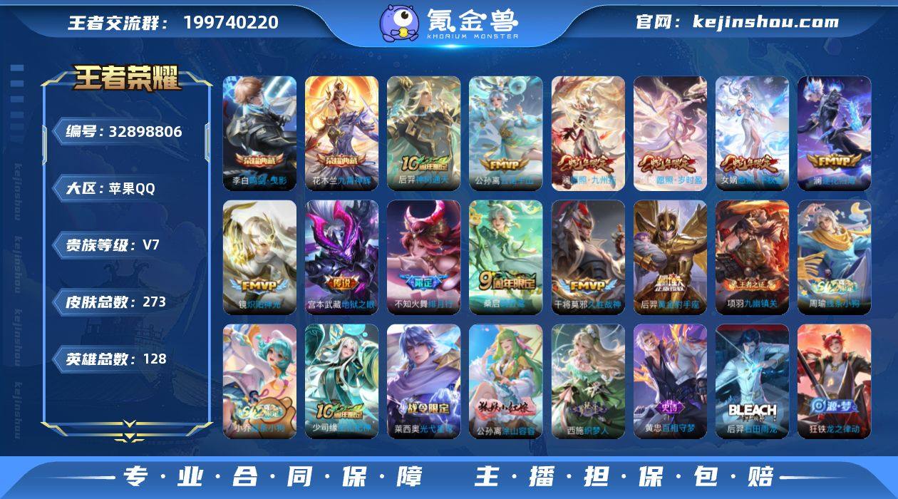 【2典藏13个高质量传说多限定7个个性按键】苹果Q-V7-最强王者段位-128英雄-273皮肤-2典藏皮肤-13传说-80史诗【英雄全皮】:刘禅全皮,孙权全皮,敖隐全皮,戈娅全皮,空空儿全皮,影全皮【荣耀典藏】:李白鸣剑曳影,花木兰九霄神辉【传说皮肤】:马超神骥逐星野,后羿神树通天,公孙离云诺千山,女娲愿照千秋盛,澜愿照九州拓,虞姬愿照岁时盈,桑启鸣野蒿,澜逐花归海,不知火舞绯月行,镜炽阳神光,干将莫邪久胜战神,后羿黄金射手座,宫本武藏地狱之眼【限定皮肤】:大乔绒语心约,姜子牙天穹之誓,狄仁杰阴阳师,赵云皇家上将,高渐离死亡摇滚,钟无艳超时空战士,元歌无心,甄姬落雪兰心,马可波罗山海玄木吟,狄仁杰魔术师,狄仁杰万华元夜,达摩星际陆战队,达摩沙漠行僧,项羽海滩派对,老夫子醍醐杖,程咬金演武夺筹,兰陵王金庭之子,不知火舞绯月行,孙悟空至尊宝,李元芳云中旅人,钟馗驱傩正仪,干将莫邪胡桃夹子,雅典娜黎明之约,鬼谷子五谷丰年,百里玄策原初追逐者,弈星混沌棋,沈梦溪大漠名商,明世隐疑决卦,裴擒虎李小龙,裴擒虎擒涛扼浪,嫦娥暖冬兔眠,西施玲珑珍味,鲁班大师探海日志,桑启海盐诗旅,暃星界游侠,戈娅驭风魔法,阿古朵江河有灵,张...