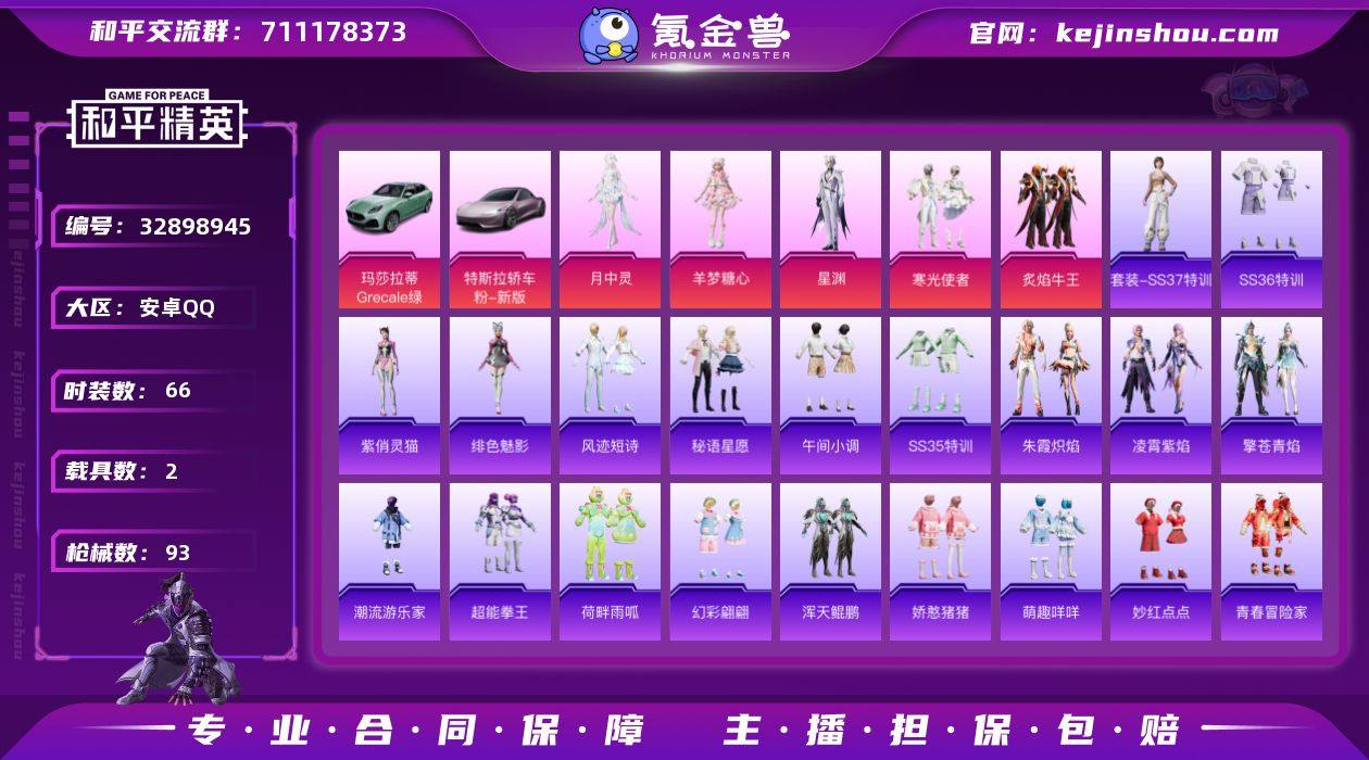 【和平精英】6粉装,8特效枪,3载具,历史最高段位:超级王牌11星 王牌印记8次 热力值:63667,126套装,184枪械,208装备,103战备;套装:套装-梦幻火箭,套装-炙焰牛王,套装-寒光使者,角色-羊梦糖心,角色-星渊,角色-月中灵,套装-蓝色运动,套装-黄色伏地魔,套装-竞技名士,套装-长空猛禽,套装-蓝色守护者,套装-灰色守护者,套装-冷焰舞者,套装-灼焰舞者,套装-特战装甲,套装-春日漫步,套装-潮流先锋,套装-龙腾端午,套装-暗黑骑手,套装-千禧之恋,套装-魅力单车,套装-夜莺强袭者,套装-都市漫游者,套装-野性战心,套装-破晓战魂,套装-风行保卫者,套装-雪山精英,套装-幻世战舞者,套装-缤纷果语,套装-滨海厨神,套装-龙魂突击队,套装-极速红龙,套装-麻辣教官,套装-粉红小猪,套装-破蛋小黄鸡,套装-疯狂小兔子,套装-霓虹街区,套装-SS8特训,套装-萌黄之夏,套装-超能拳王,套装-夏日音浪,套装-SS9特训,套装-顽皮玉兔,套装-探宝勇士,套装-牛气满满,套装-青春冒险家,套装-潮流游乐家,套装-萌趣颜团子,套装-特种颜团子,套装-战术大师,套装-狙击之神,套装-SS12特训,套装-牛气冲天,套装-耀粉歌者,套装-迅捷之星,套装-治愈之星,套装-科技之...