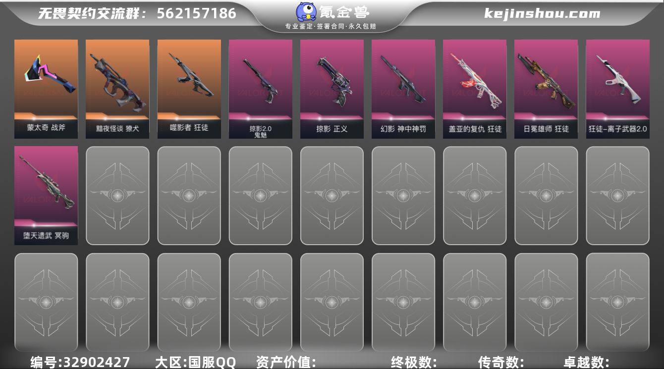 【无畏契约】等级:99,已用无畏点19570,已用源晶点600,橙皮:獠犬-黯夜怪谈|狂徒-噬影者|近战-ORA x 颗秒 军刀|近战-蒙太奇 战斧|近战-悲悯之刃__紫皮:狂徒-日冕雄师|狂徒-盖亚的复仇|冥驹-堕天遗武|正义-掠影|狂徒-离子武器2.0|幻影-神中神罚|鬼魅-掠影2.0__段位:白银__蓝皮:正义-纳米打击|蜂刺-甜心猎手|短炮-甜心猎手|莽侠-甜心猎手|幻影-甜心猎手|戍卫-甜心猎手|正义-诛心猎手|冥驹-诛心猎手|獠犬-诛心猎手|奥丁-诛心猎手|雄鹿-风暴之子|戍卫-风暴之子|正义-风暴之子|冥驹-风暴之子|狂徒-超集系统|标配-超集系统|飞将-超集系统__绿皮:标配-星际猎兵|狂徒-幻心猎手|鬼魅-幻心猎手|战神-蒙太奇|幻影-蒙太奇|狂怒-蒙太奇|骇灵-蒙太奇__英雄:尚勃勒|维斯|黑梦|斯凯|暮蝶|盖可|霓虹|壹决|星礈|K/O|幽影|夜露|钢锁|海神|奇乐|炼狱|贤者|猎枭|钛狐|芮娜|零|捷风|蝰蛇|不死鸟|幻棱|禁灭